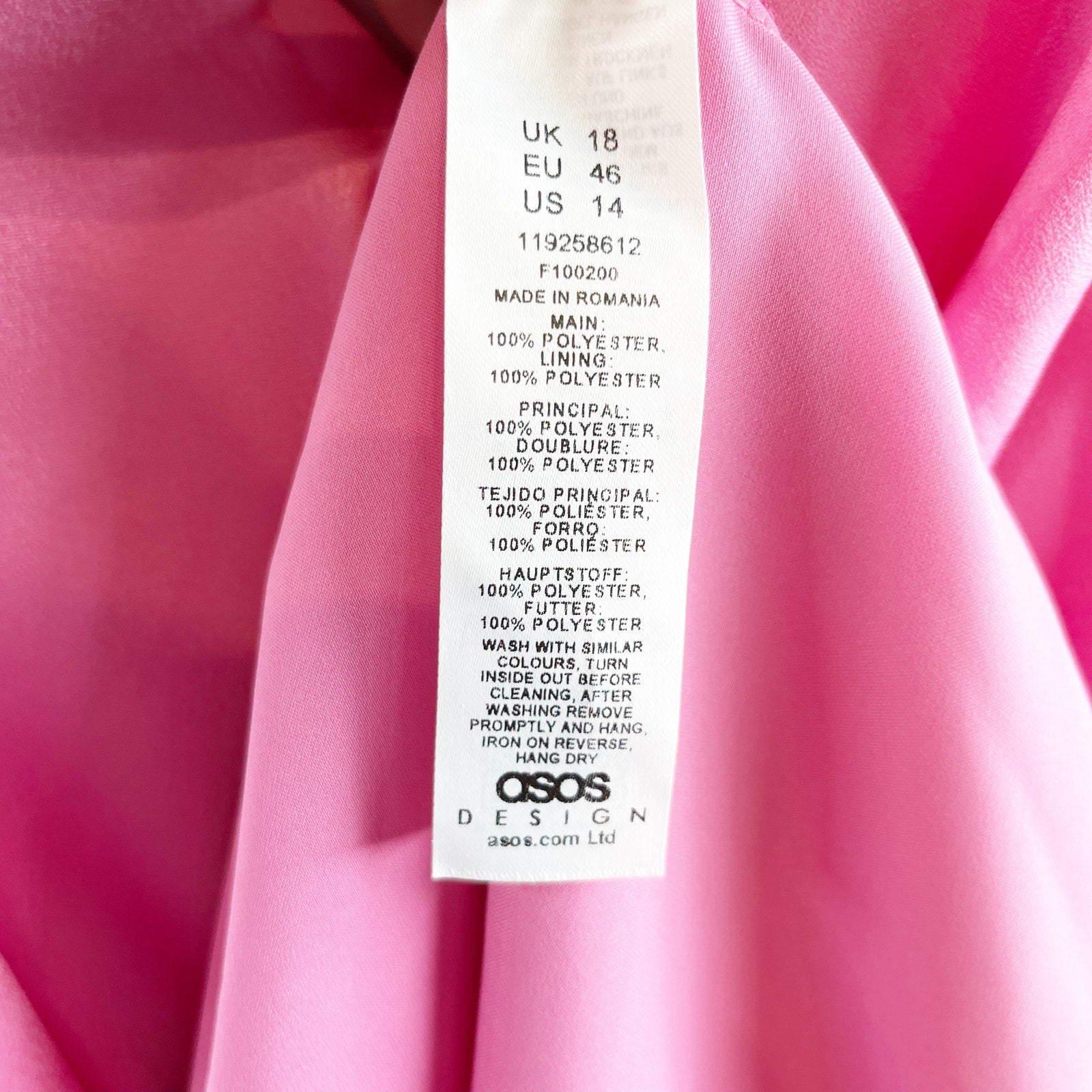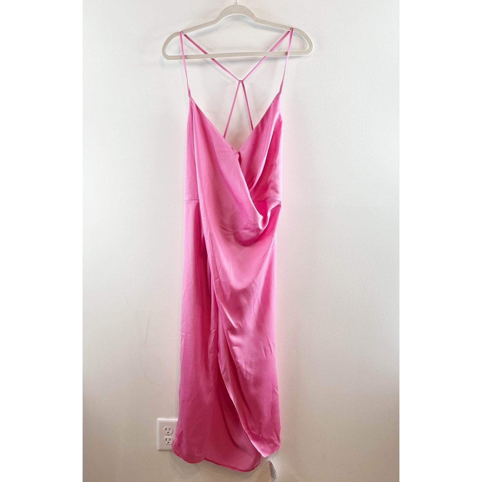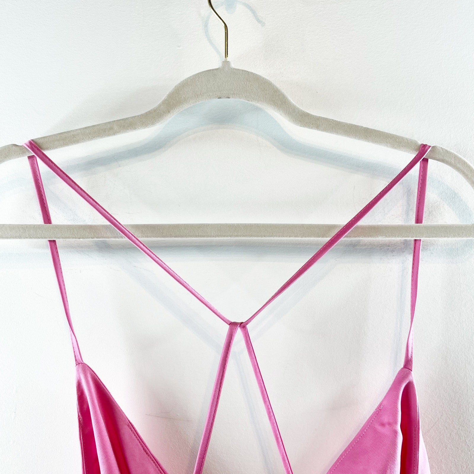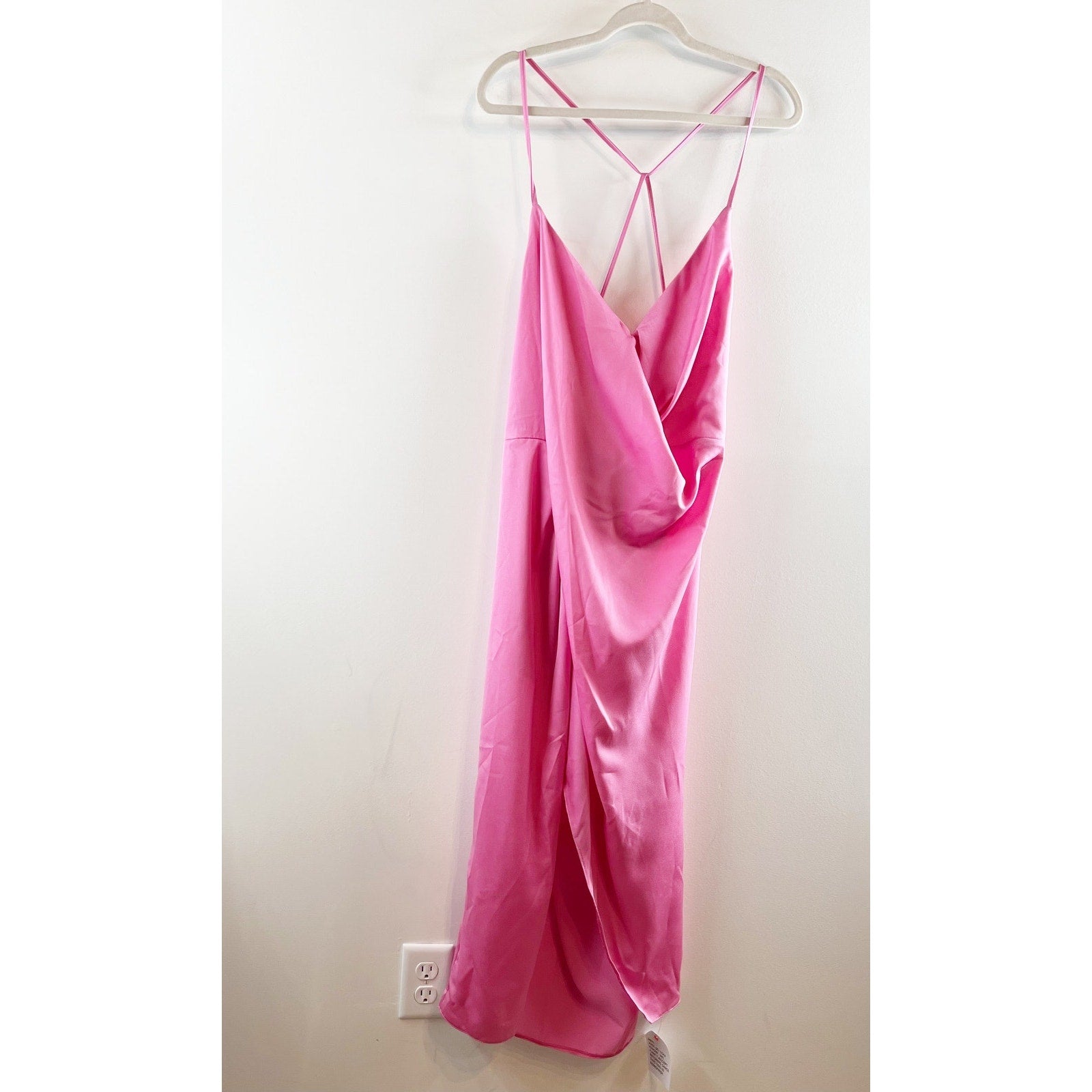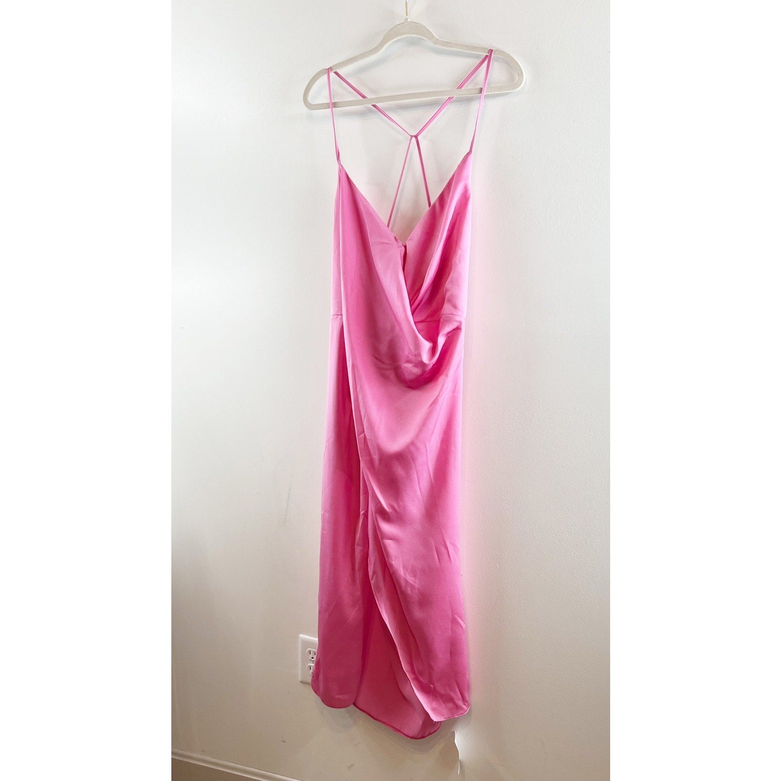 ASOS Design Draped Slit Strappy Low Back Satin Midi Dress Pink 14