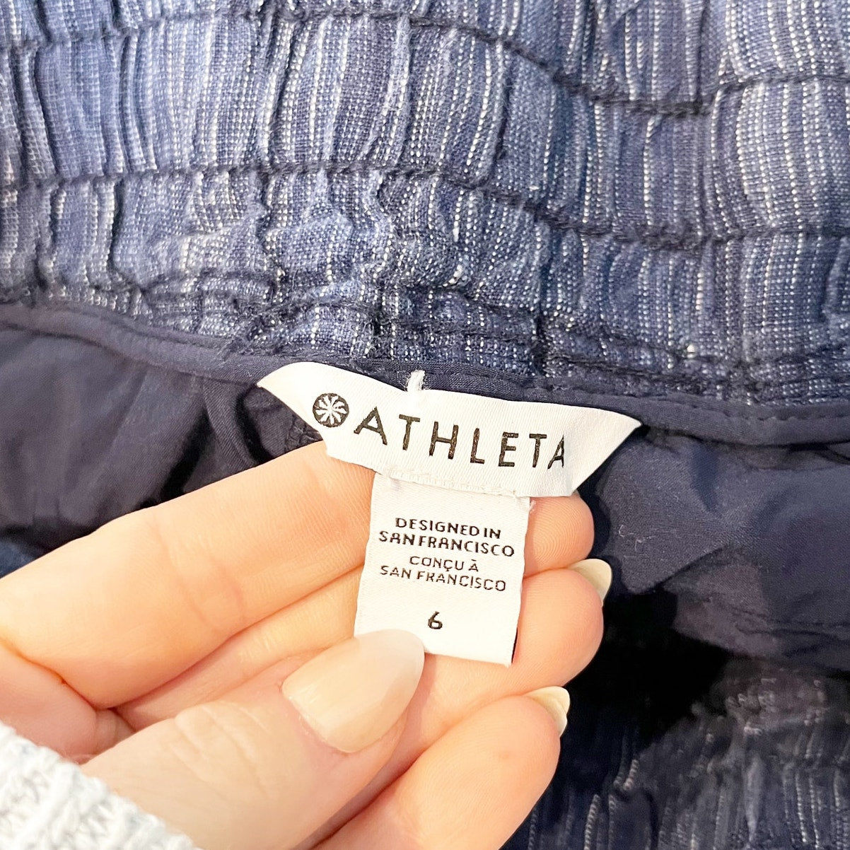 Athleta Cabo Linen Textured Pull On Shorts Blue 6