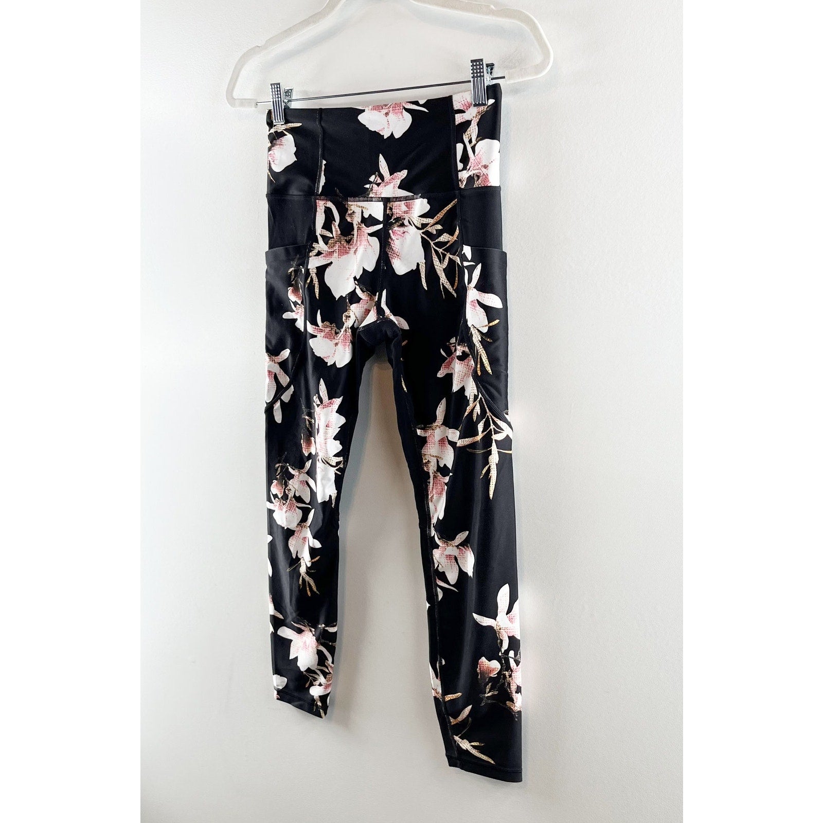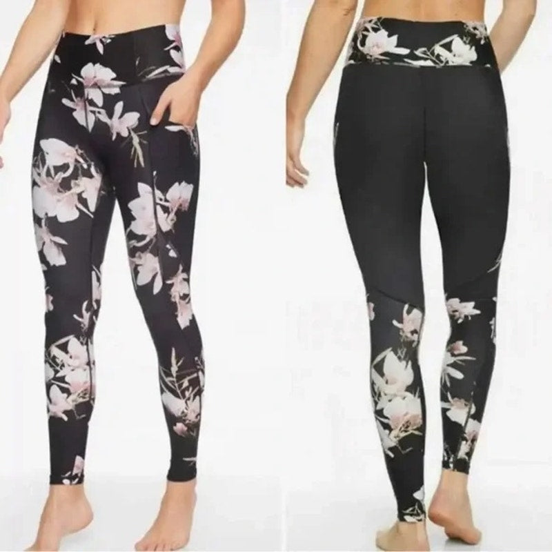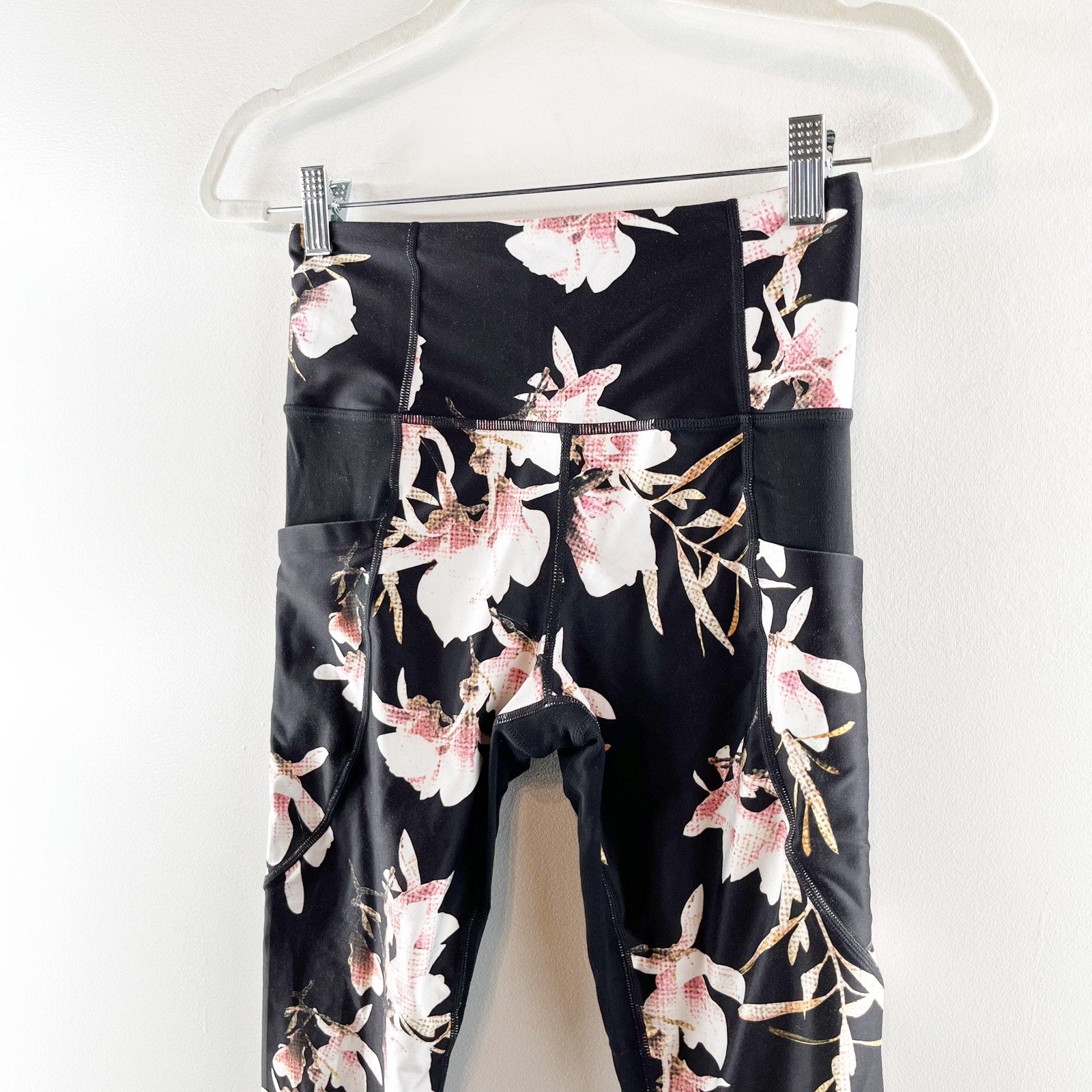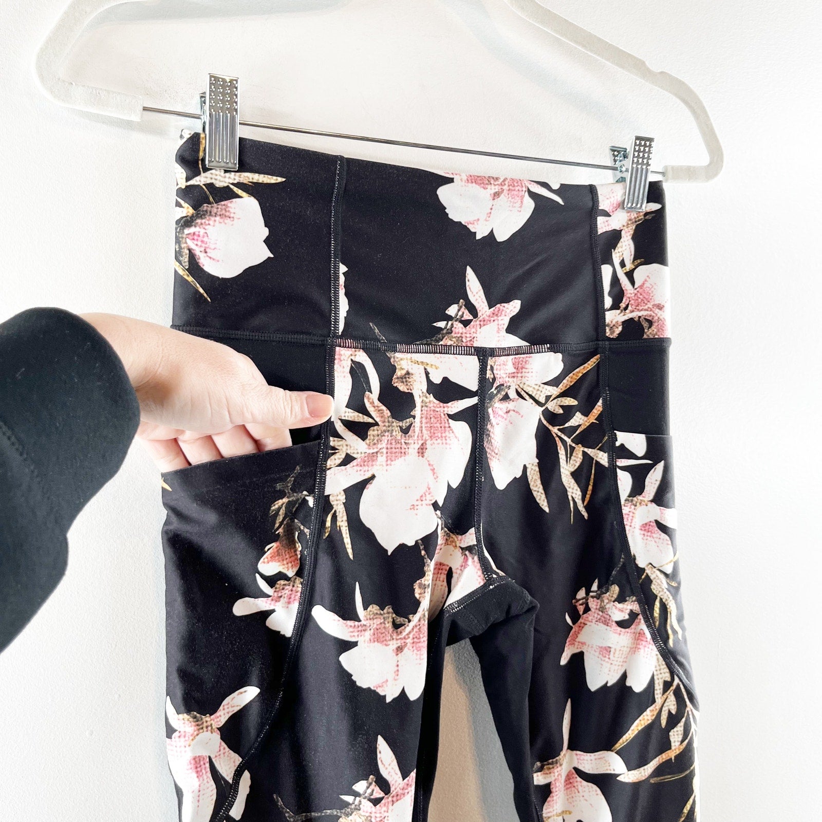 Athleta Magnolia Salutation Stash Pocket Leggings Floral Black Small