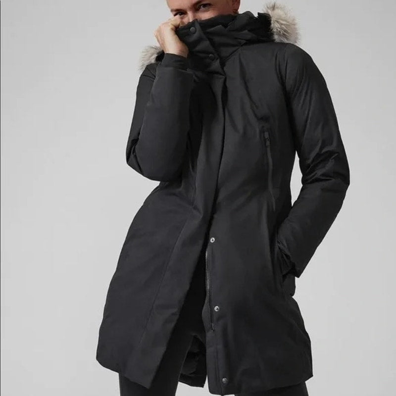 Athleta Rainout Outbound Faux Fur Hood Parka Coat Jacket Black XXS