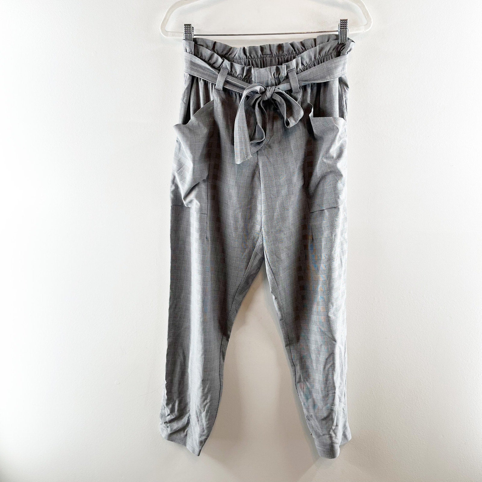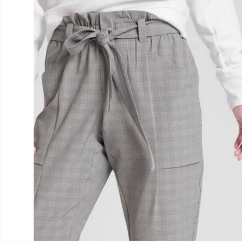 Athleta Skyline Plaid High Waisted Paperbag Pants Gray 10