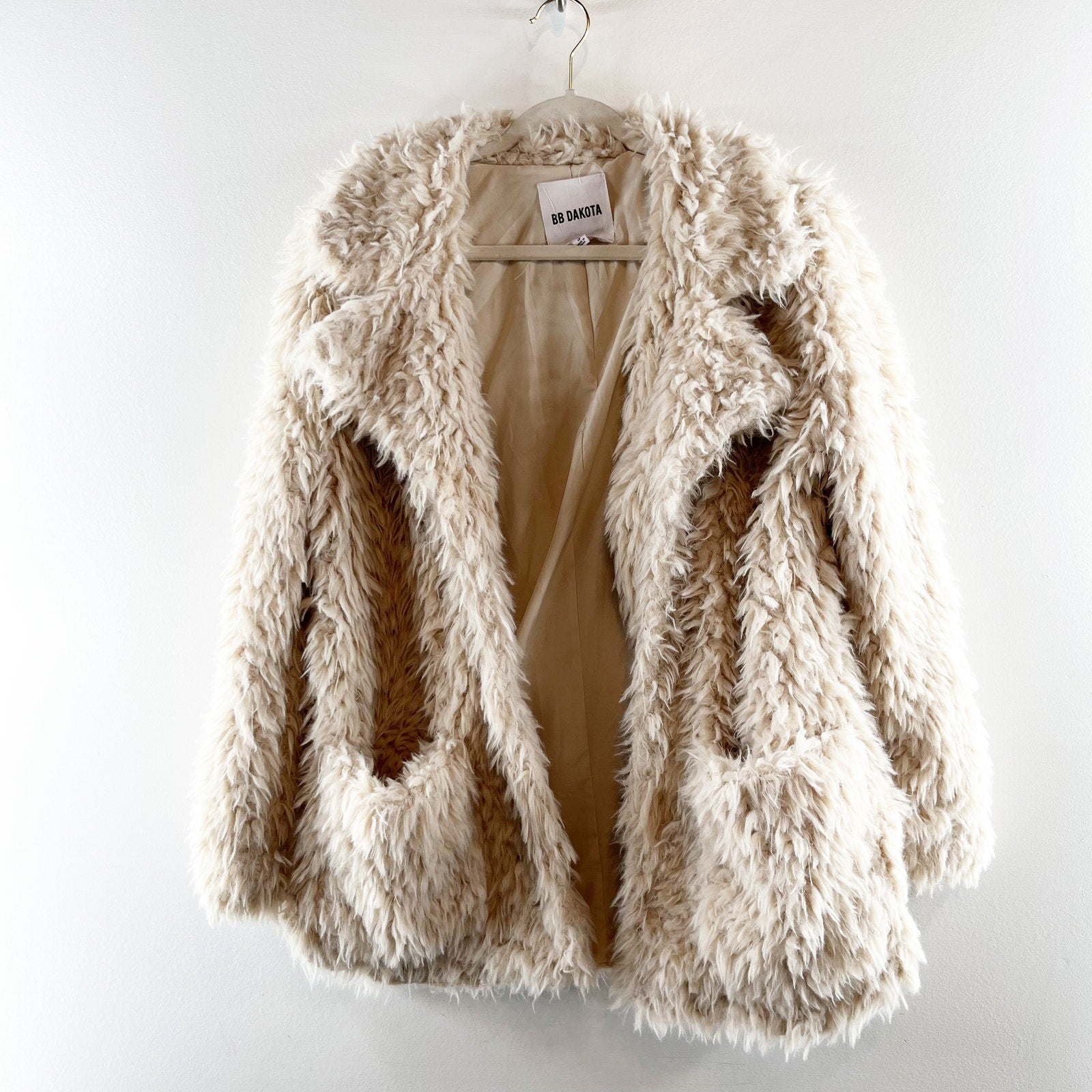 BB Dakota Warming Signs Collared Faux Fur Coat Tan Cream Small