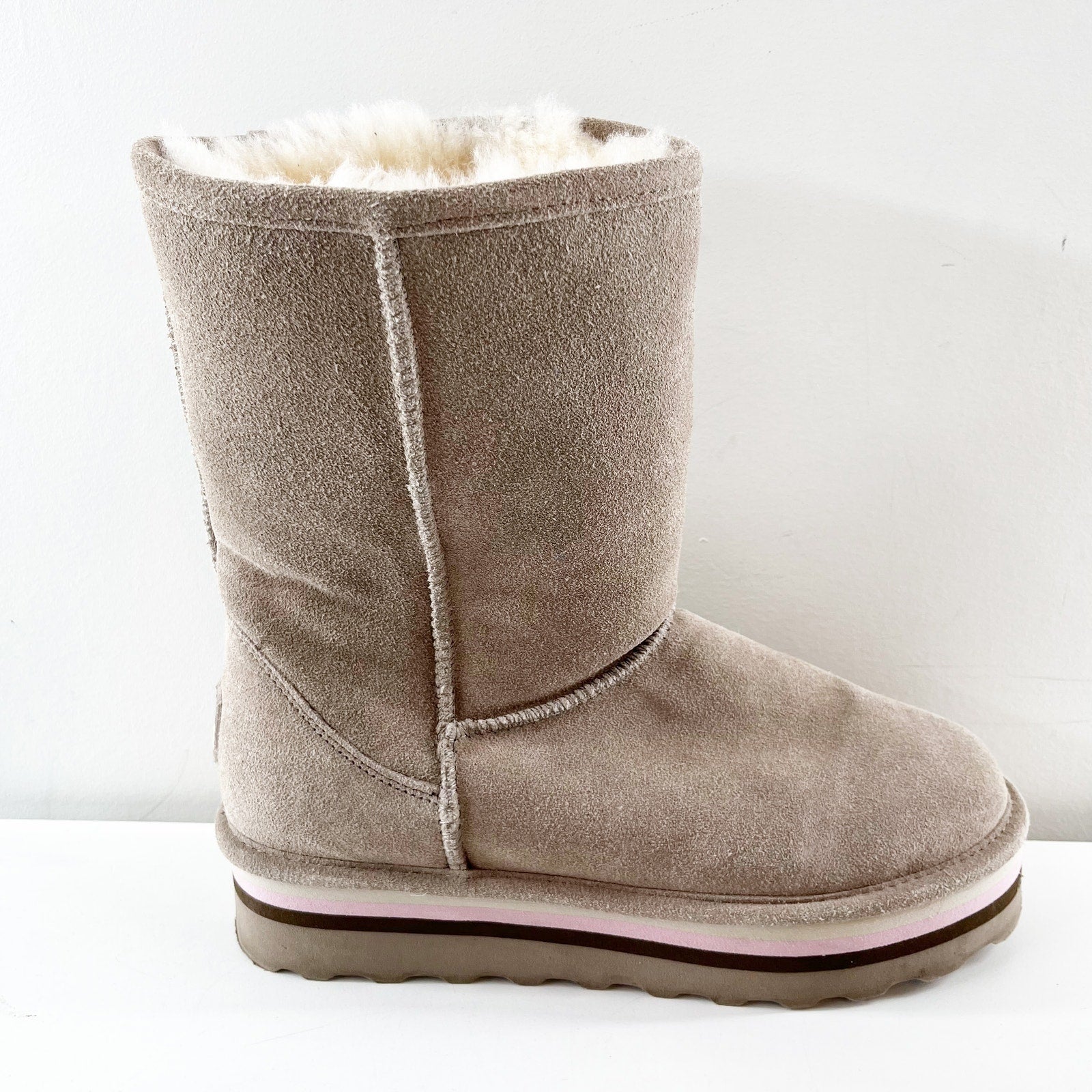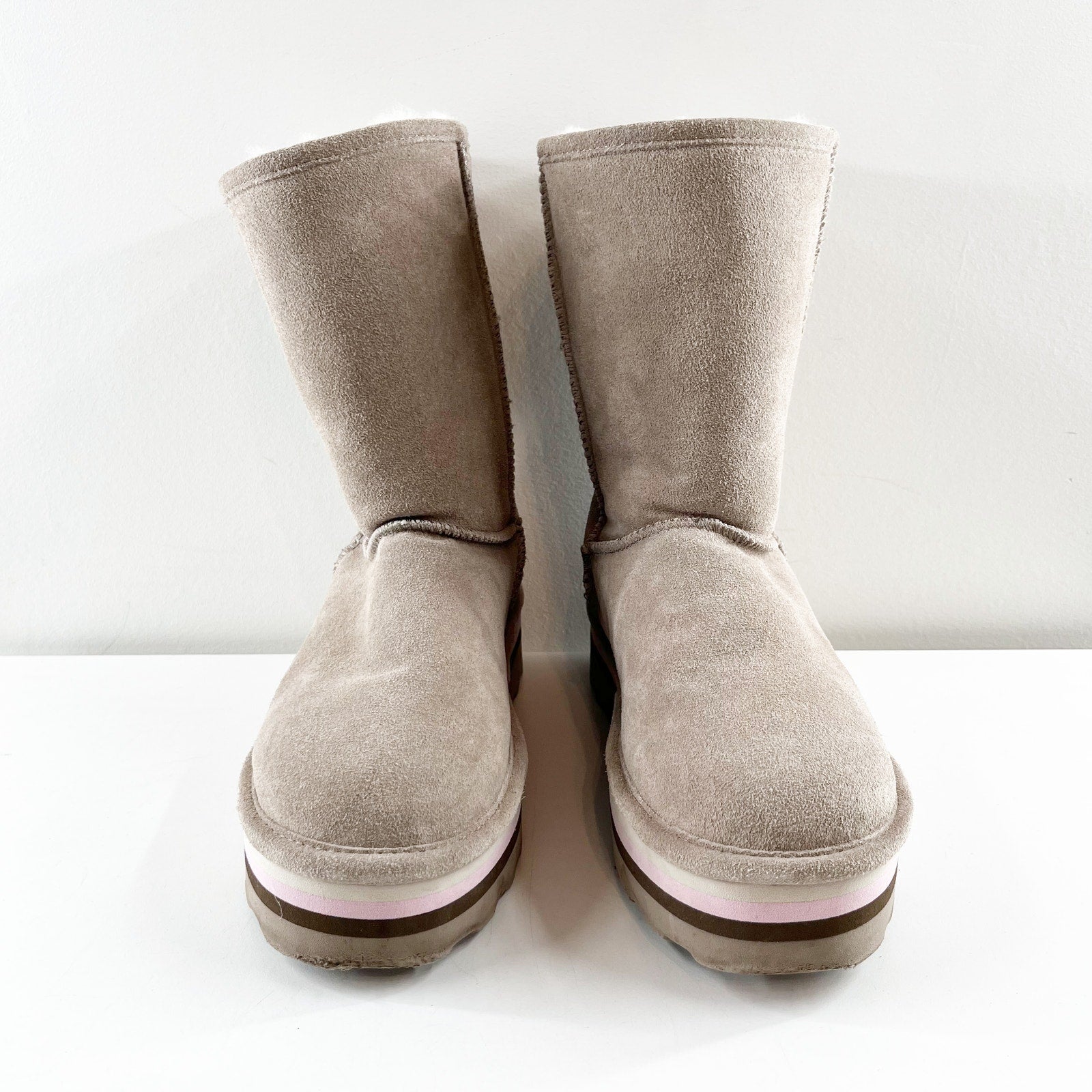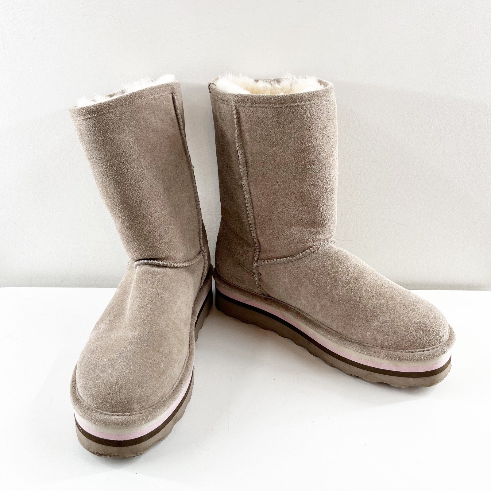 Bearpaw Retro Elle Platform Shearling Lined Mid Calf Boots Beige Tan 10
