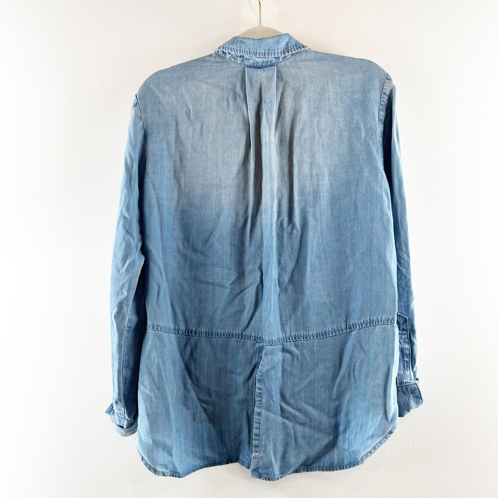 Bella Dahl Long Sleeve Button Up Split Back Chambray Shirt Blue Medium