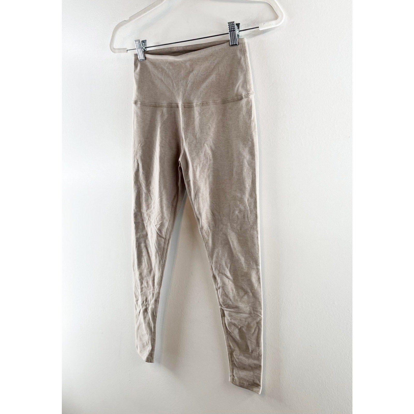 high waisted, soft, stretch, compression, ankle, yoga, running, workout, spacedye, midi, beige, tan