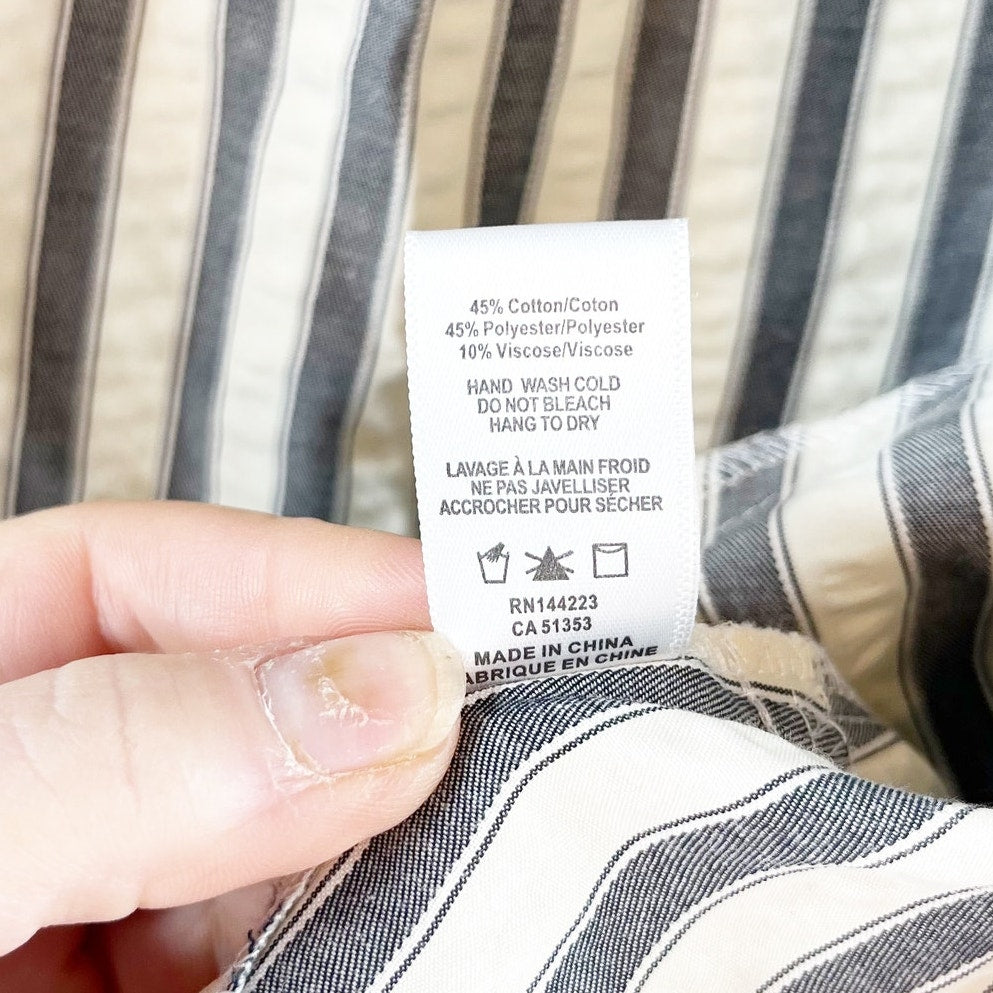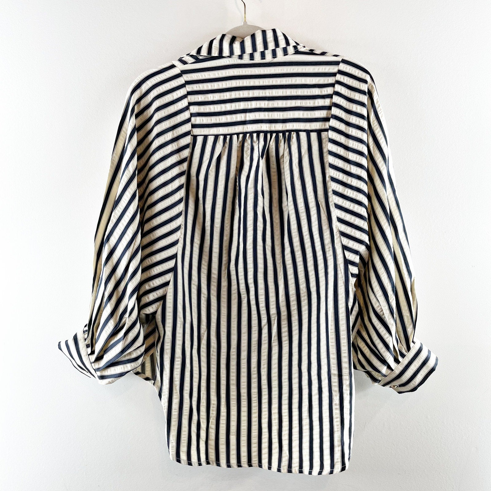 Bishop + Young Aly Striped Long Sleeve Button Front Blouse Cream Navy Blue Small