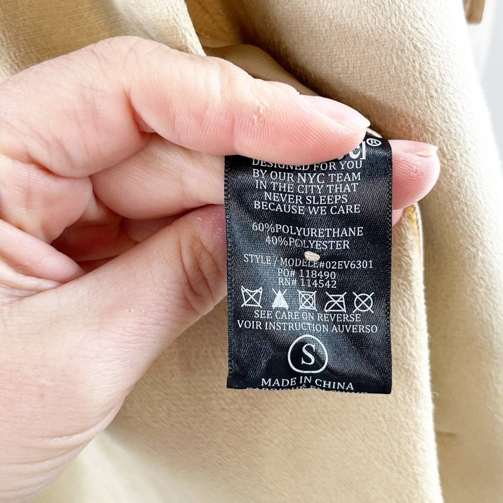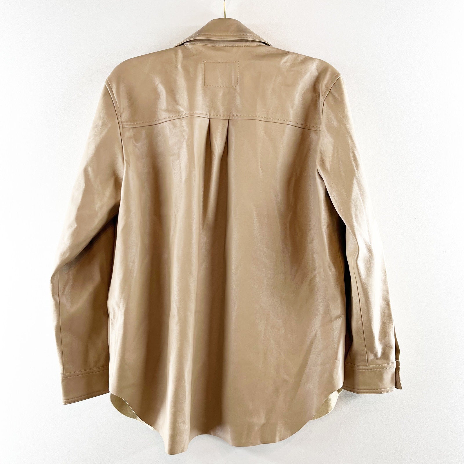 Blank NYC Faux Leather Long Sleeve Button-Front Shacket Tan Beige Small