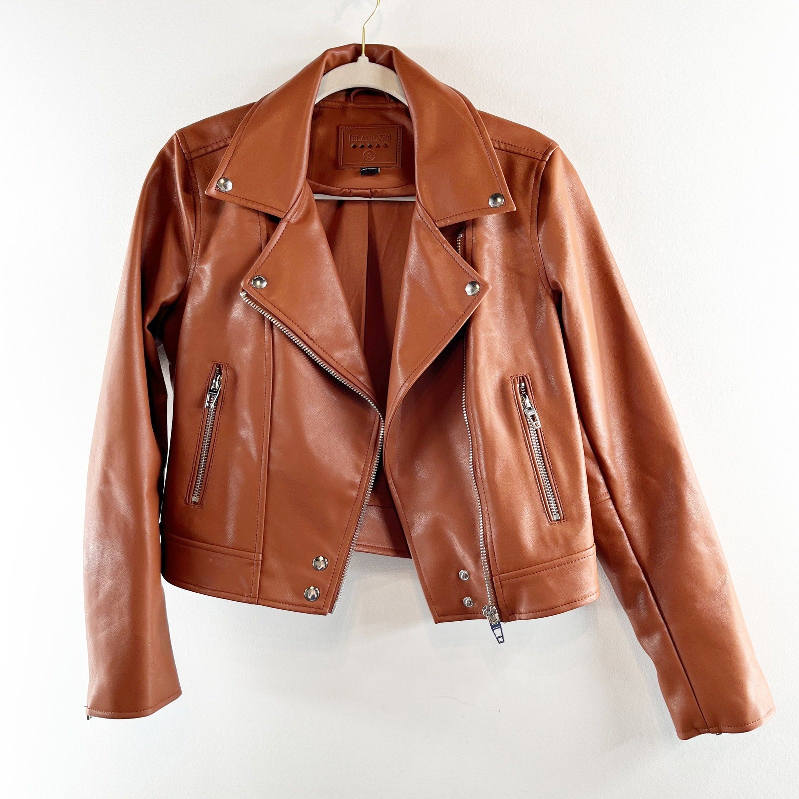 Blank NYC Good Vibes Faux Leather Moto Jacket Brown Small