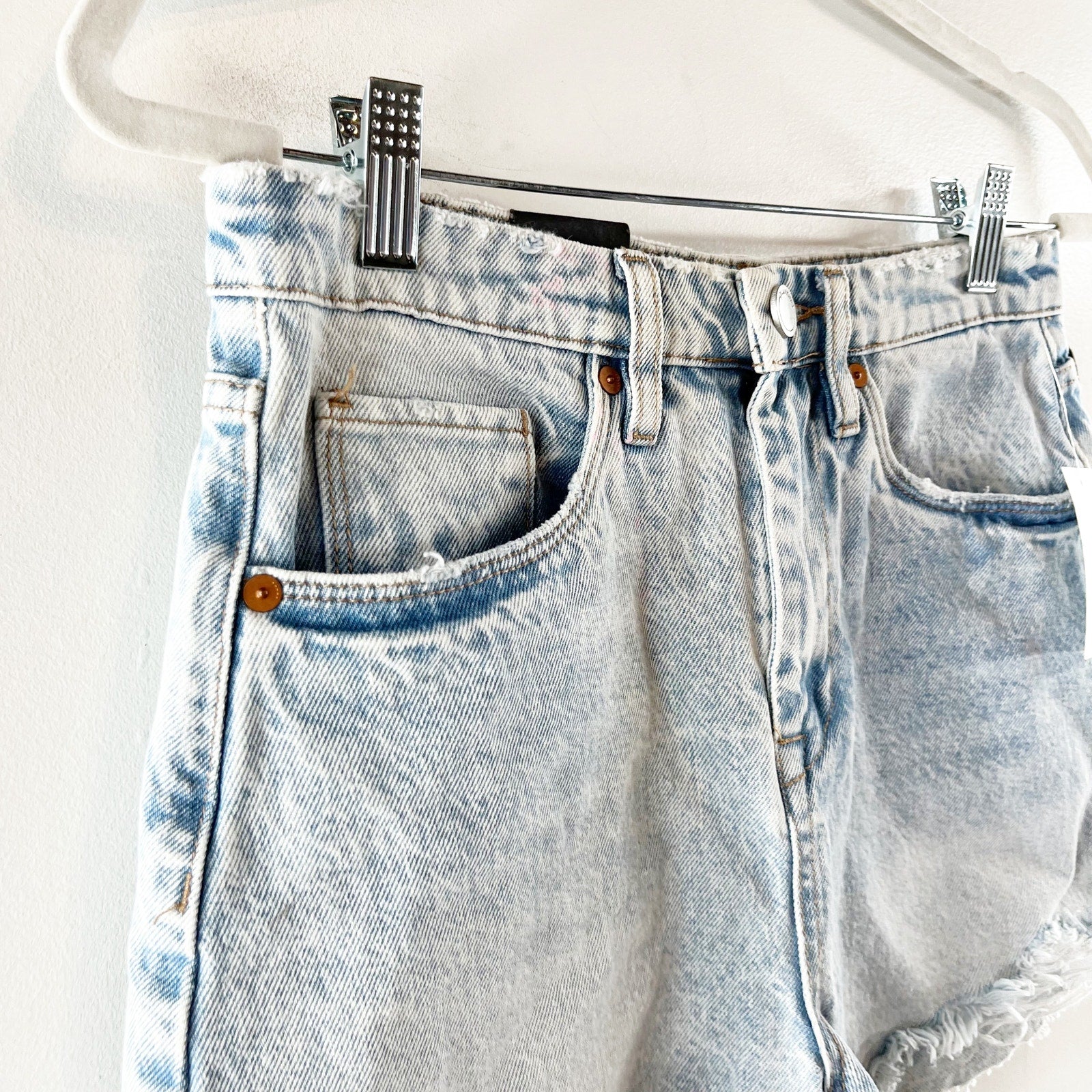 Blank NYC The Reeve Ultra High Rise Jean Distressed Cutoff Shorts Blue 27