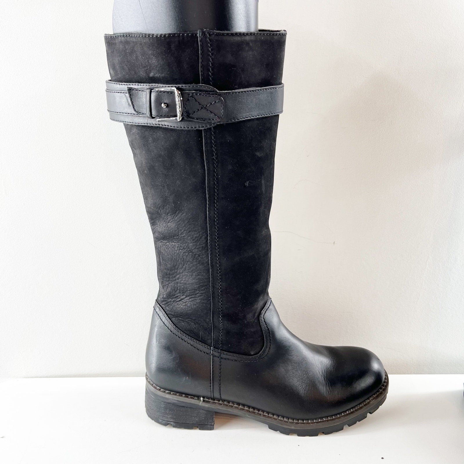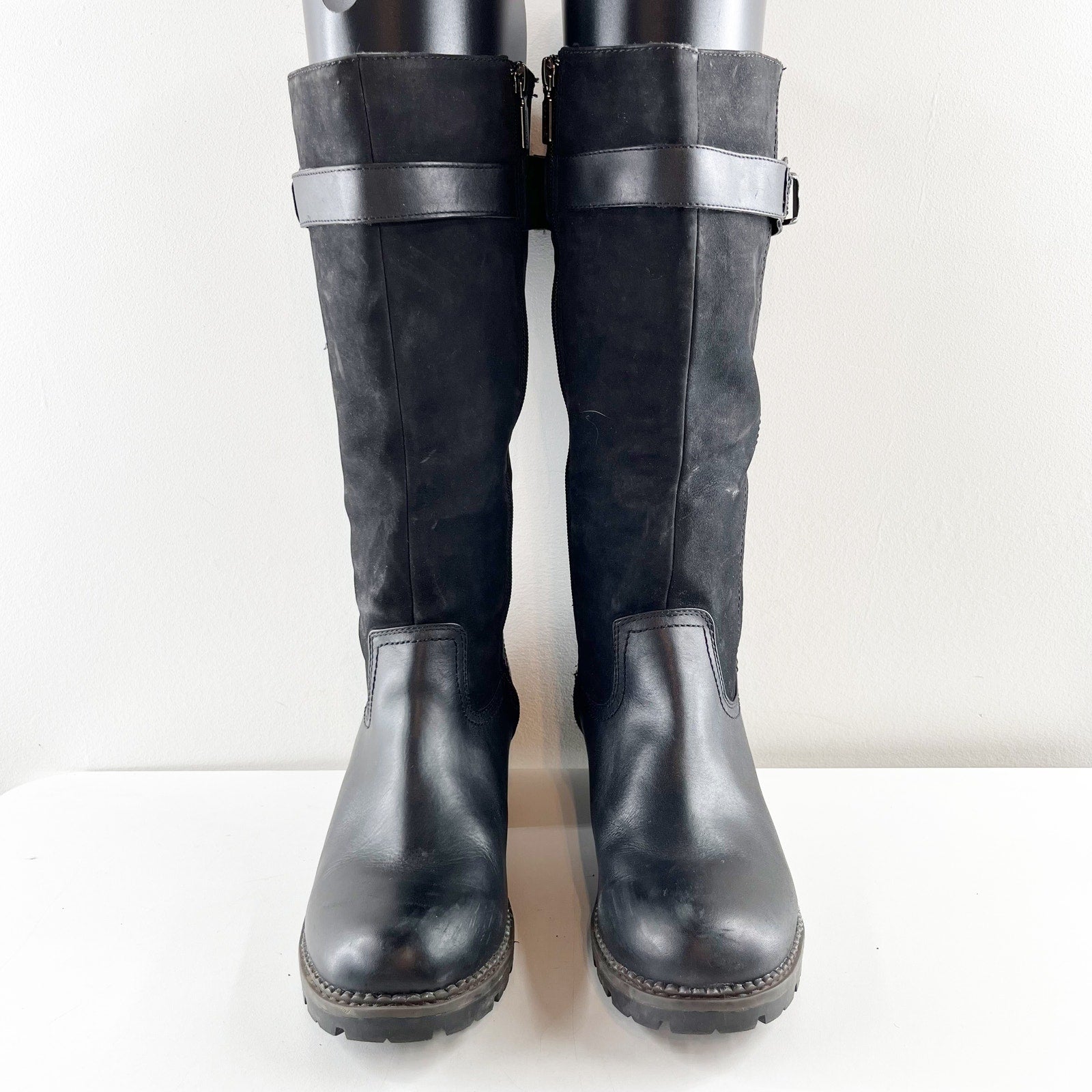 waterproof, leather, lug sole, knee high, riding, boots