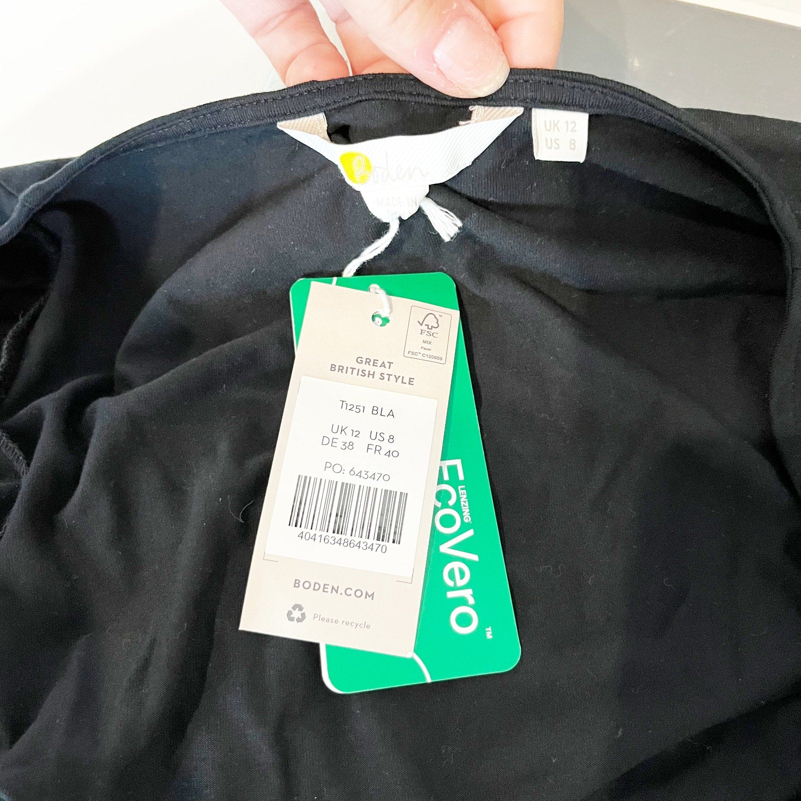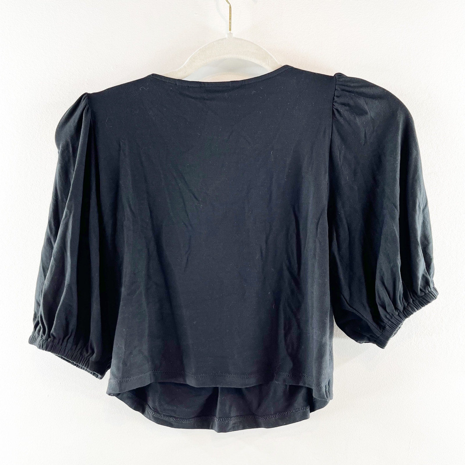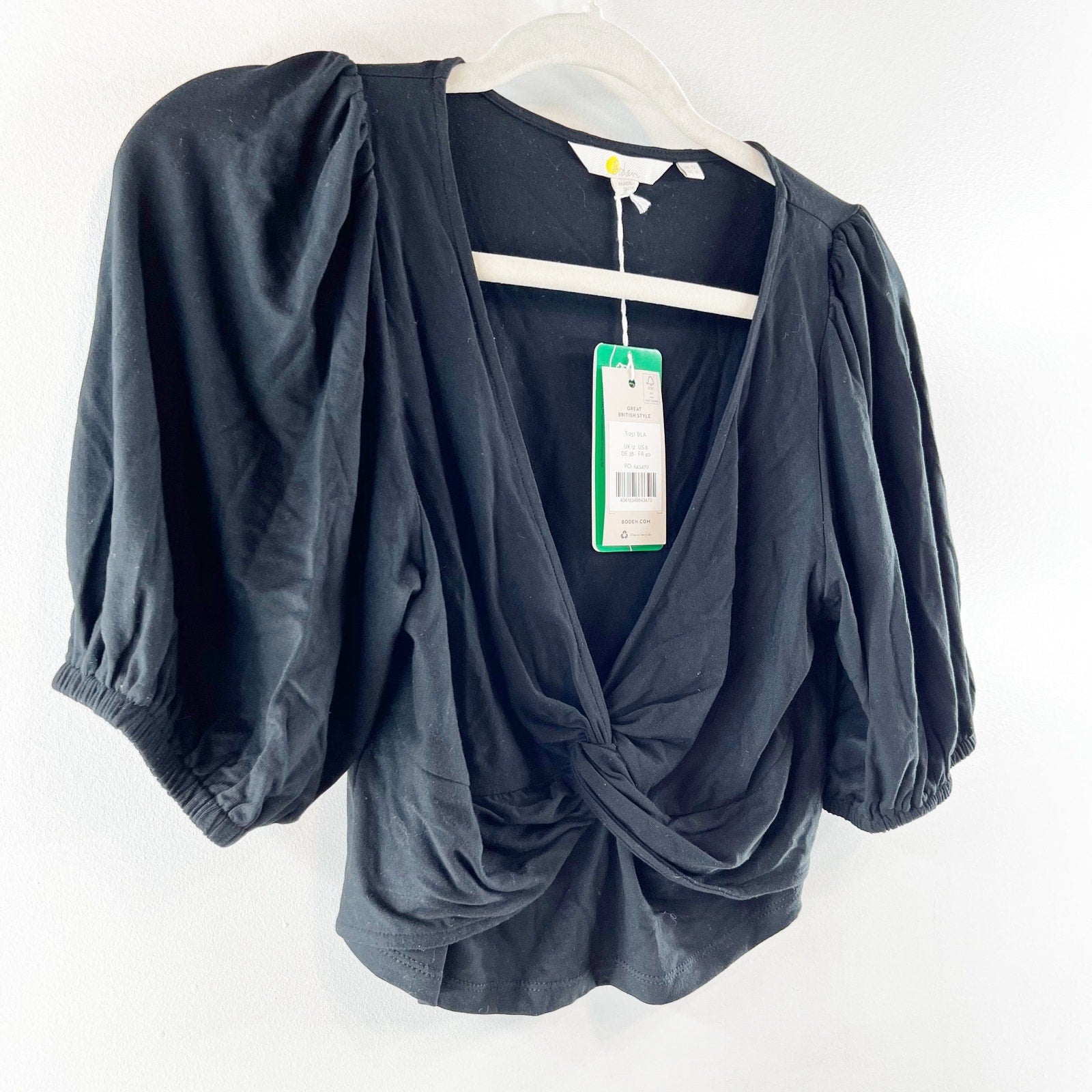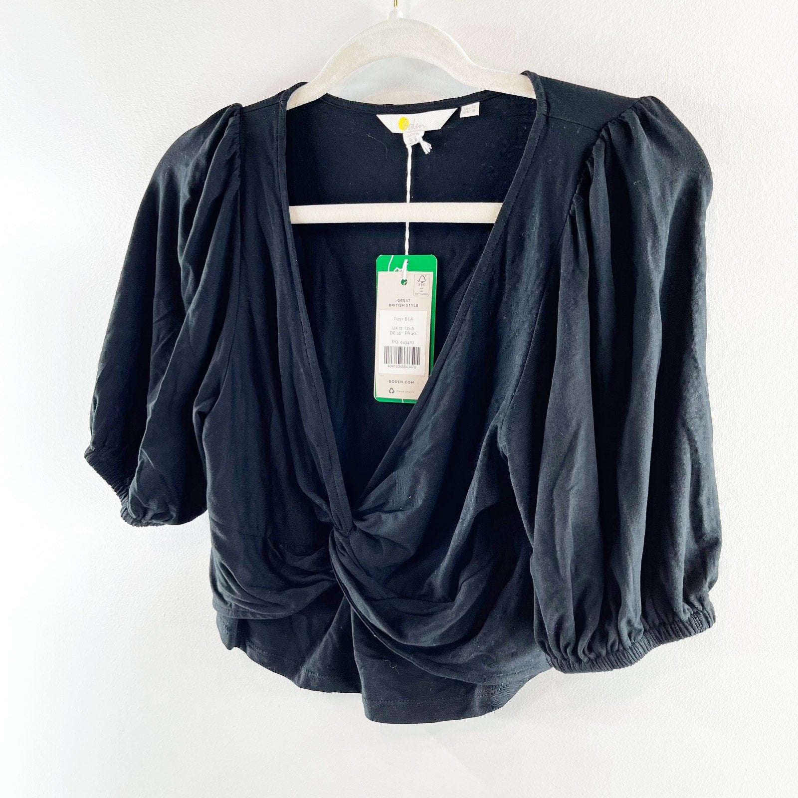 Boden V Neck Twist Front Jersey Short Puff Sleeve Crop Top Shirt Black 8