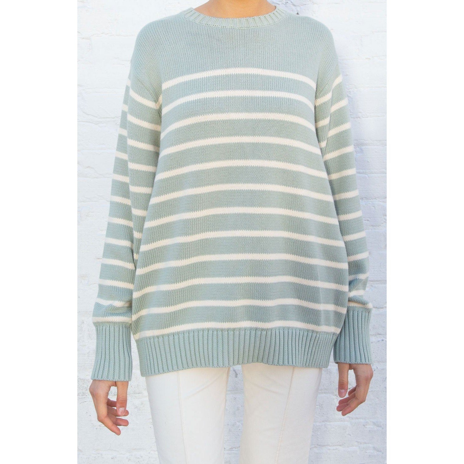 Brandy Melville Crewneck Striped Brianna Cotton Sweater Green One Size - Medium