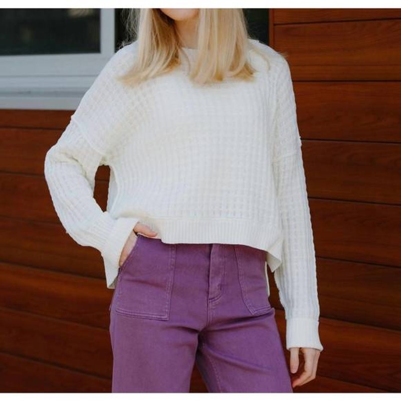 By Together Baylor Crewneck Slouchy Sweater Ivory White Medium
