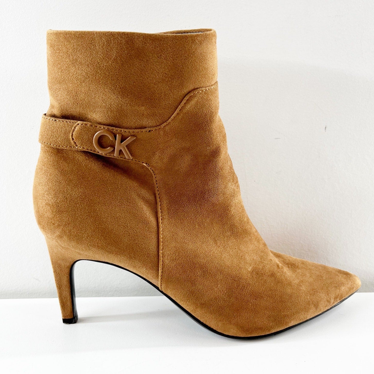 Calvin Klein Suede Pointed Toe Ankle Boots Booties Brown 7.5