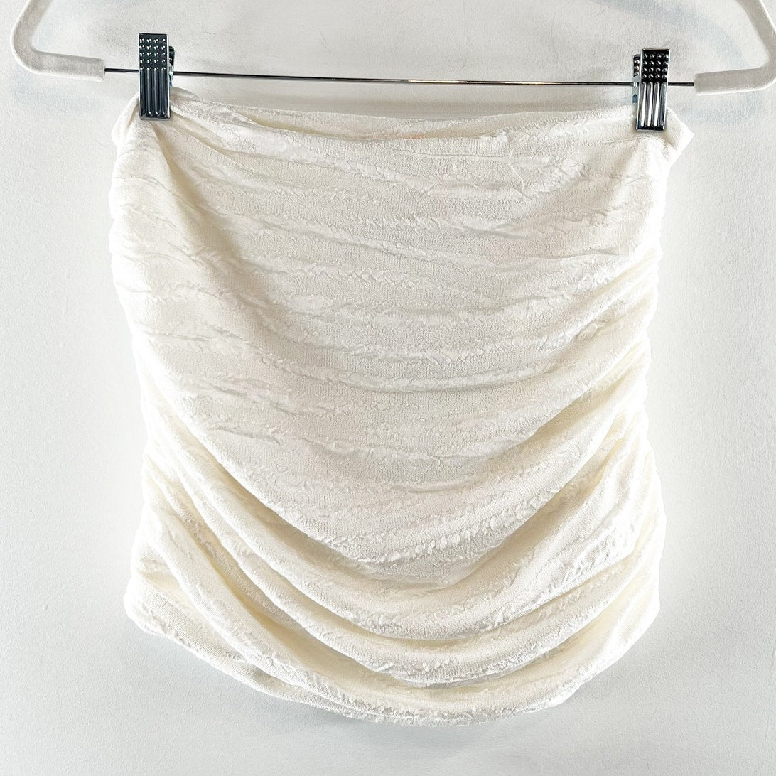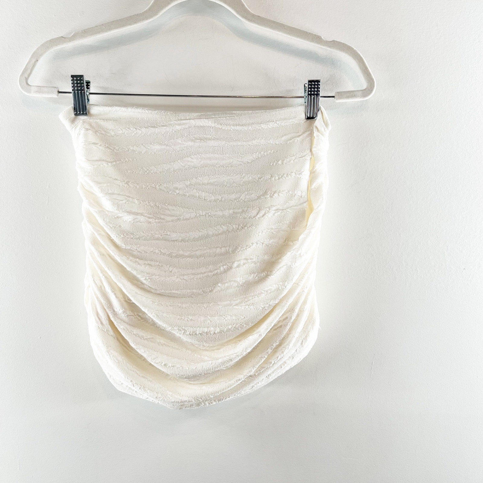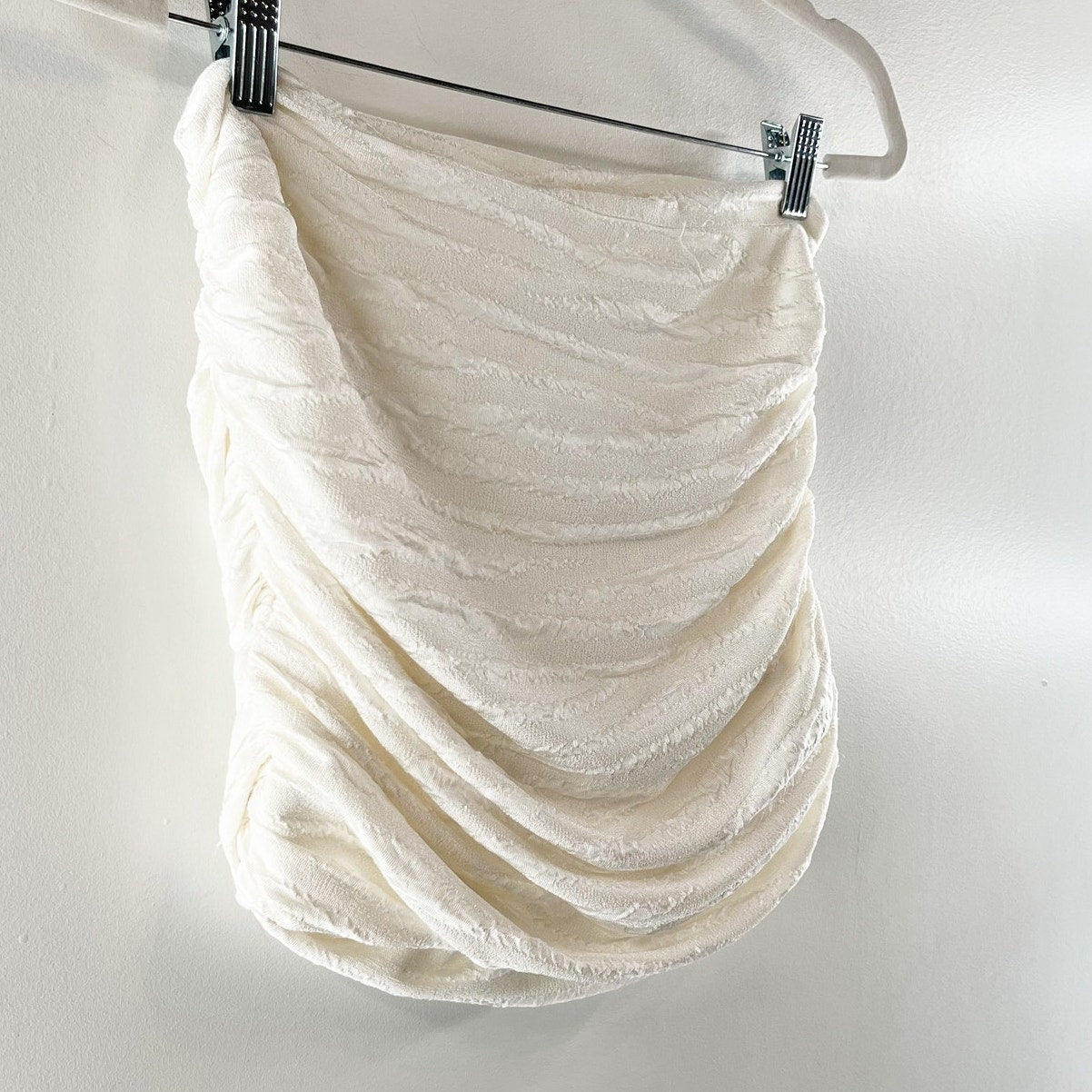 Camila Coelho Stacey Pull On Stretch High Waisted Ruched Mini Skirt White Small
