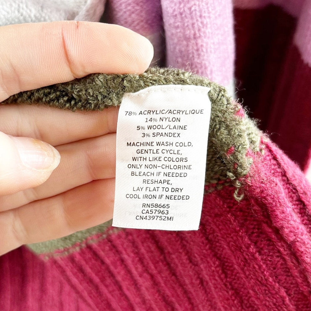 front patch pockets, striped, colorblock, green, pink, maroon, gray, sweater, open, long sleeve, cardigan