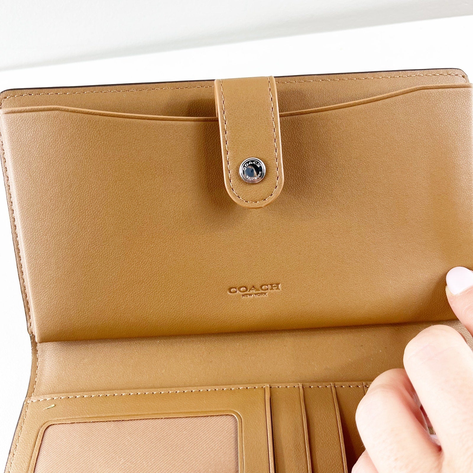 Coach Signature C Canvas Phone Tech Wallet Wristlet Brown Sage Green