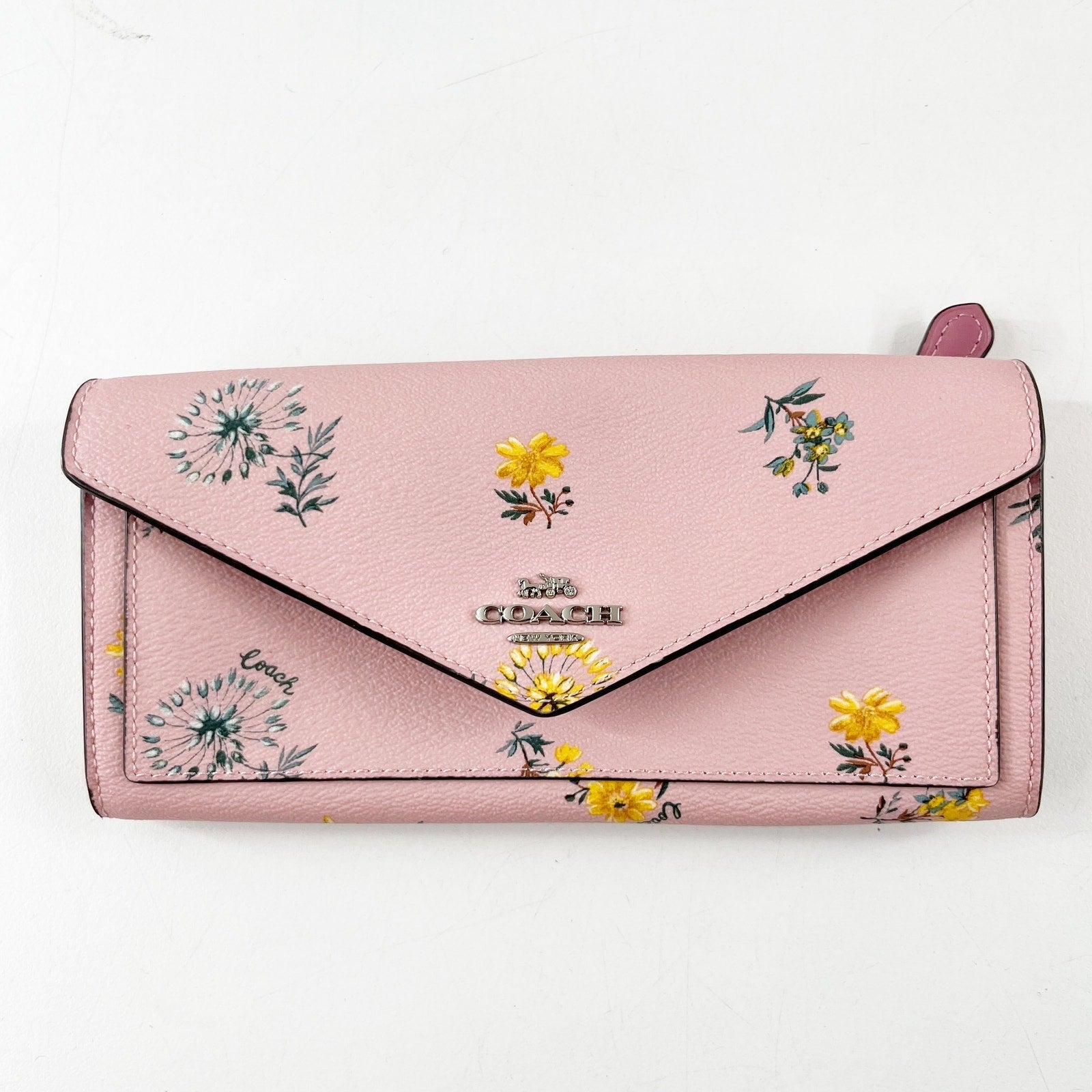 Coach Soft Coated Canvas Flap Envelope Wallet Floral Print Pink