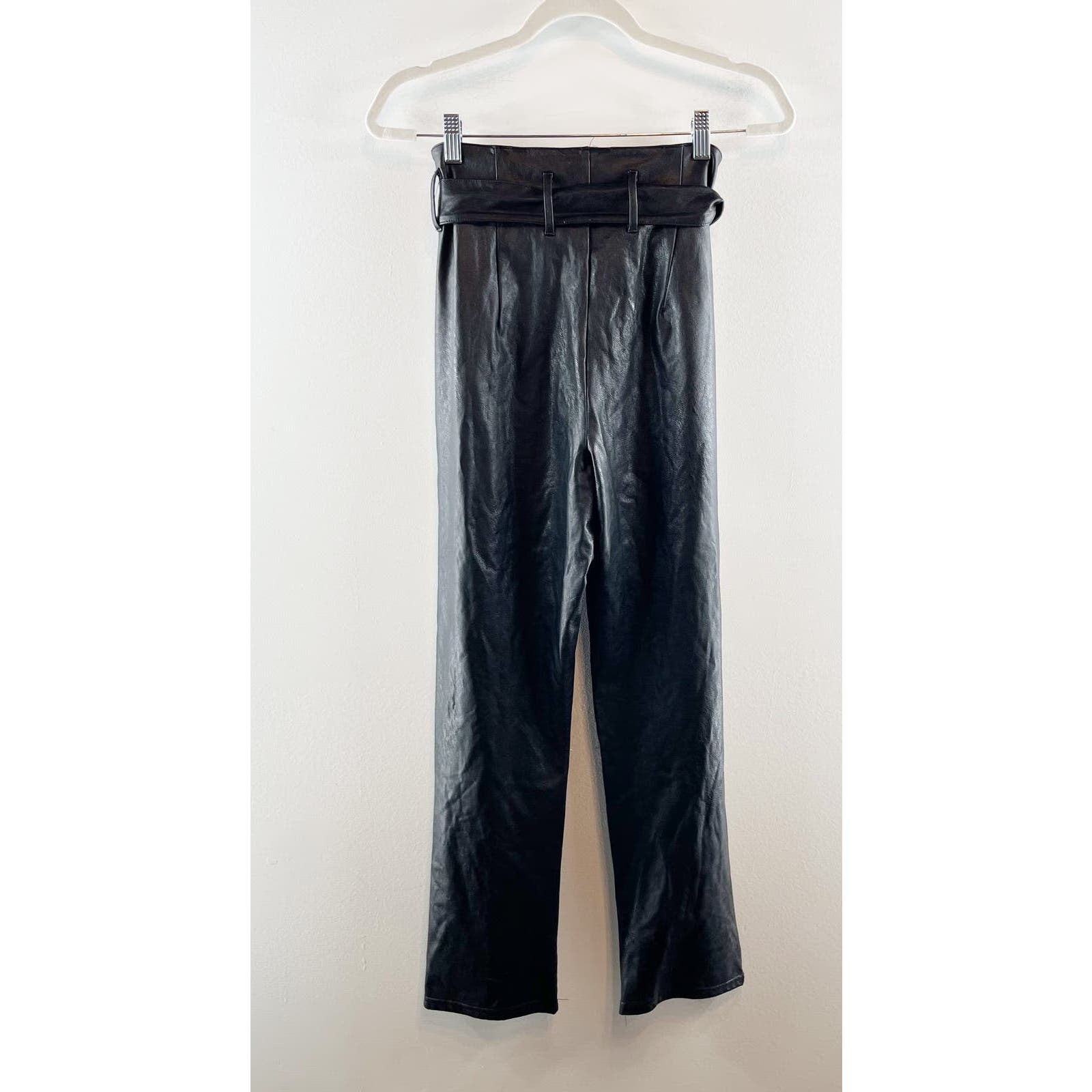 Commando Belted Paperbag Waist Cropped Faux Leather Pants Black Medium
