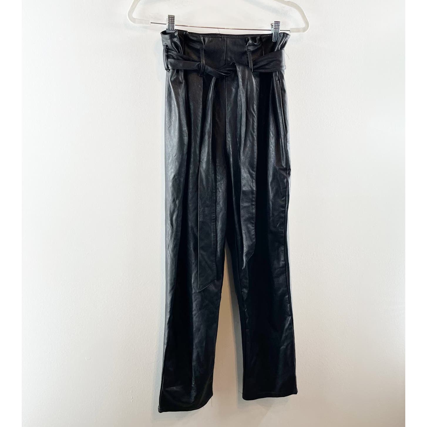 high rise, high waisted, belted, paperbag style, cropped, tapered straight leg, edgy, cool, punk, faux leather, pockets, pleated front
