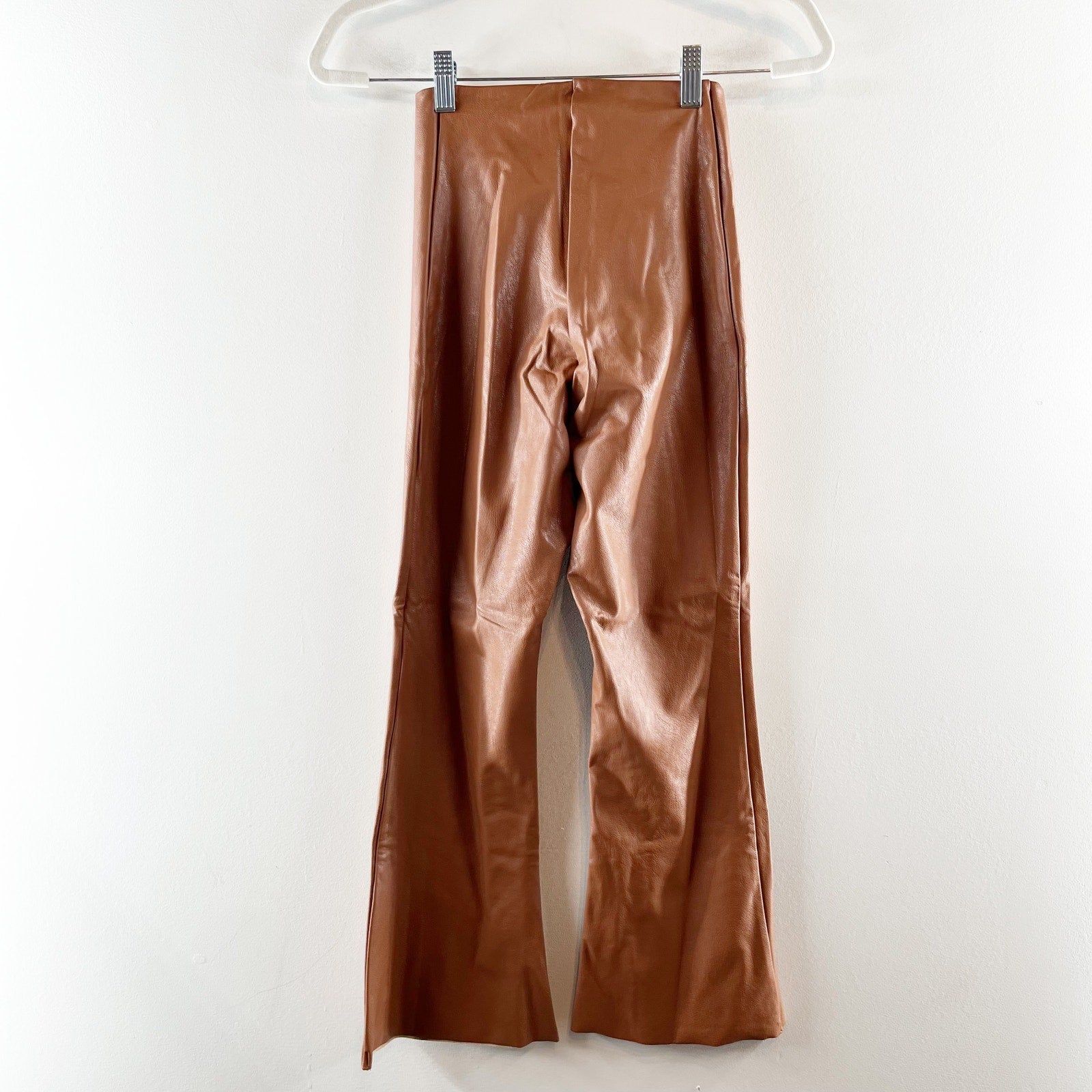 Commando High Rise Cropped Flared Leggings Faux Leather Pants Cocoa Brown Small