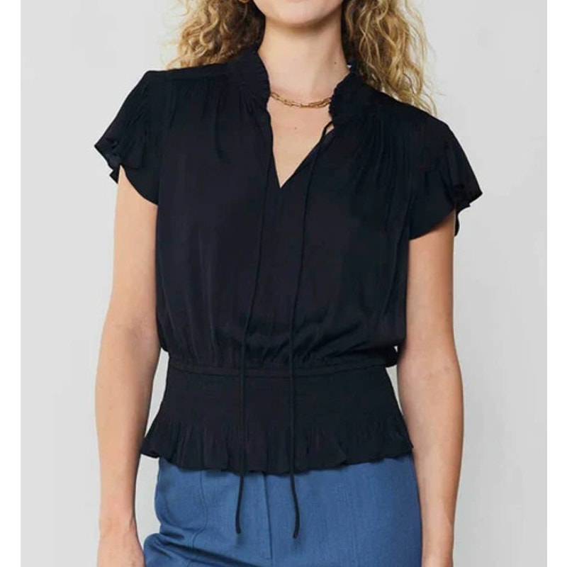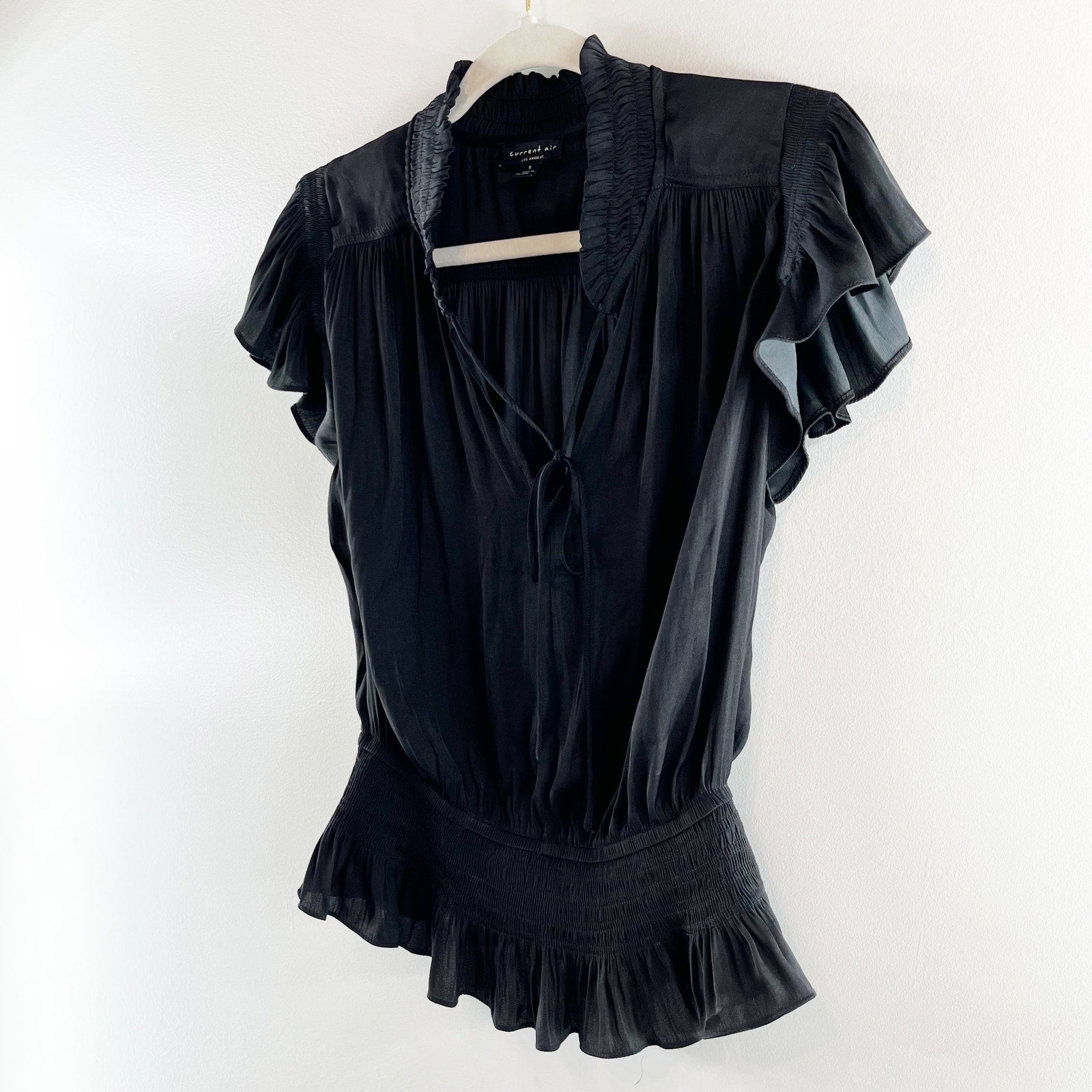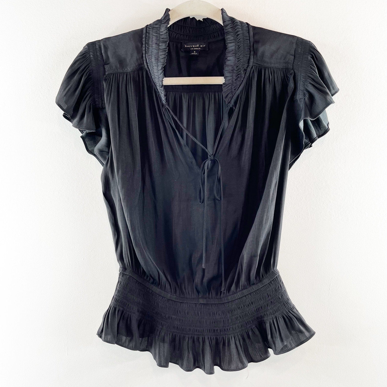 Current Air Los Angeles V-Neck Flutter Sleeve Smocking Waist Blouse Black Small