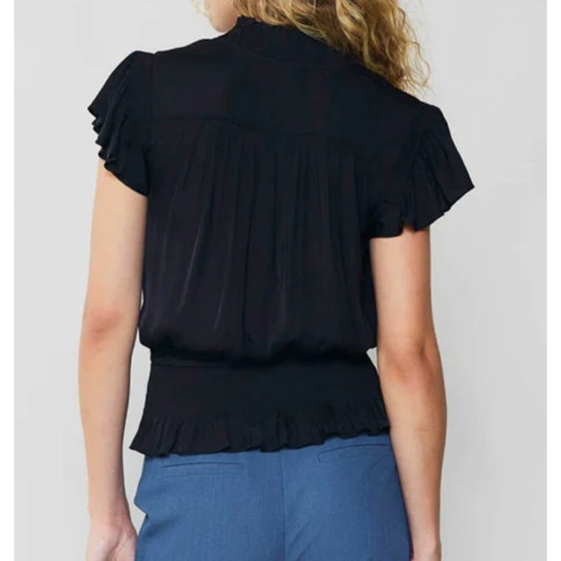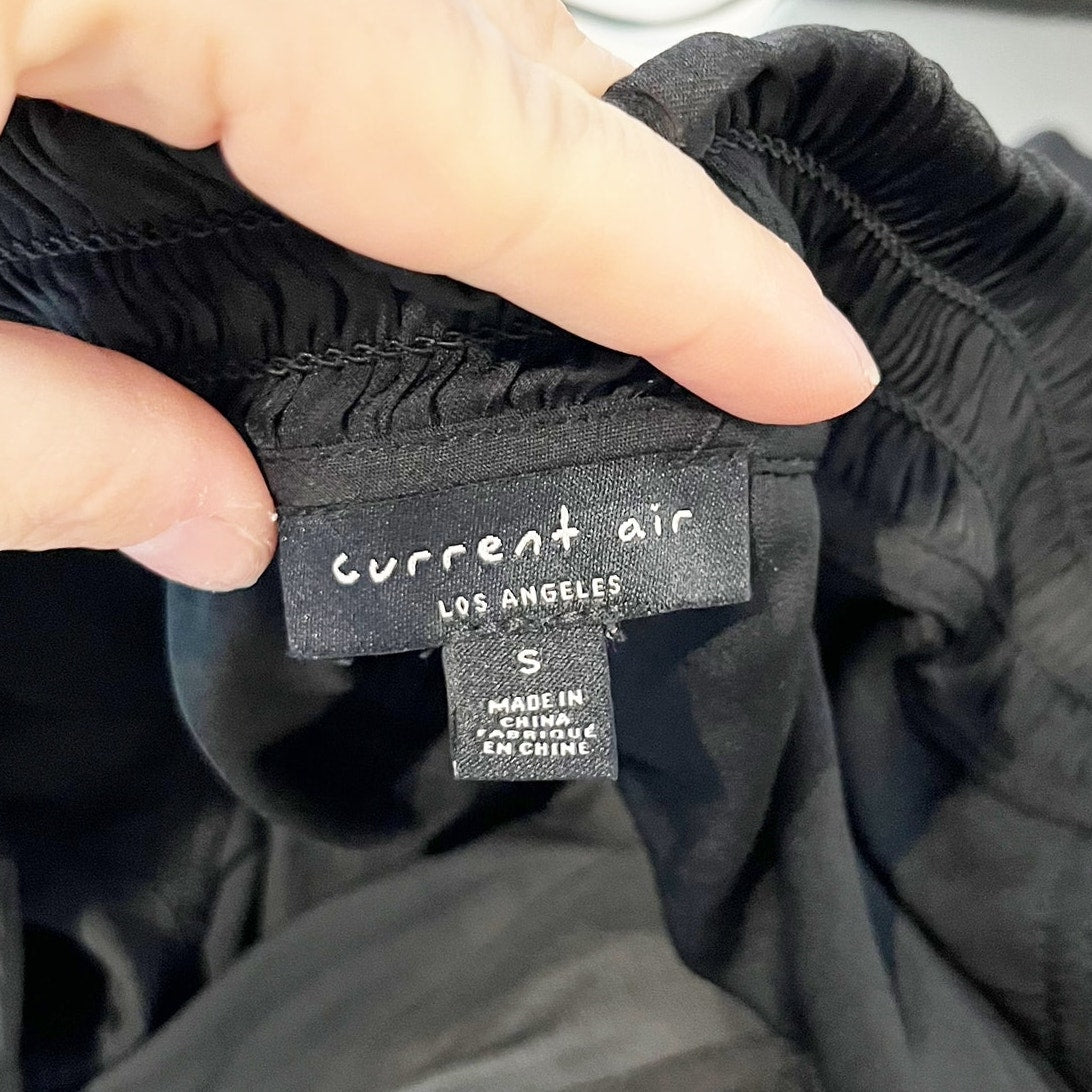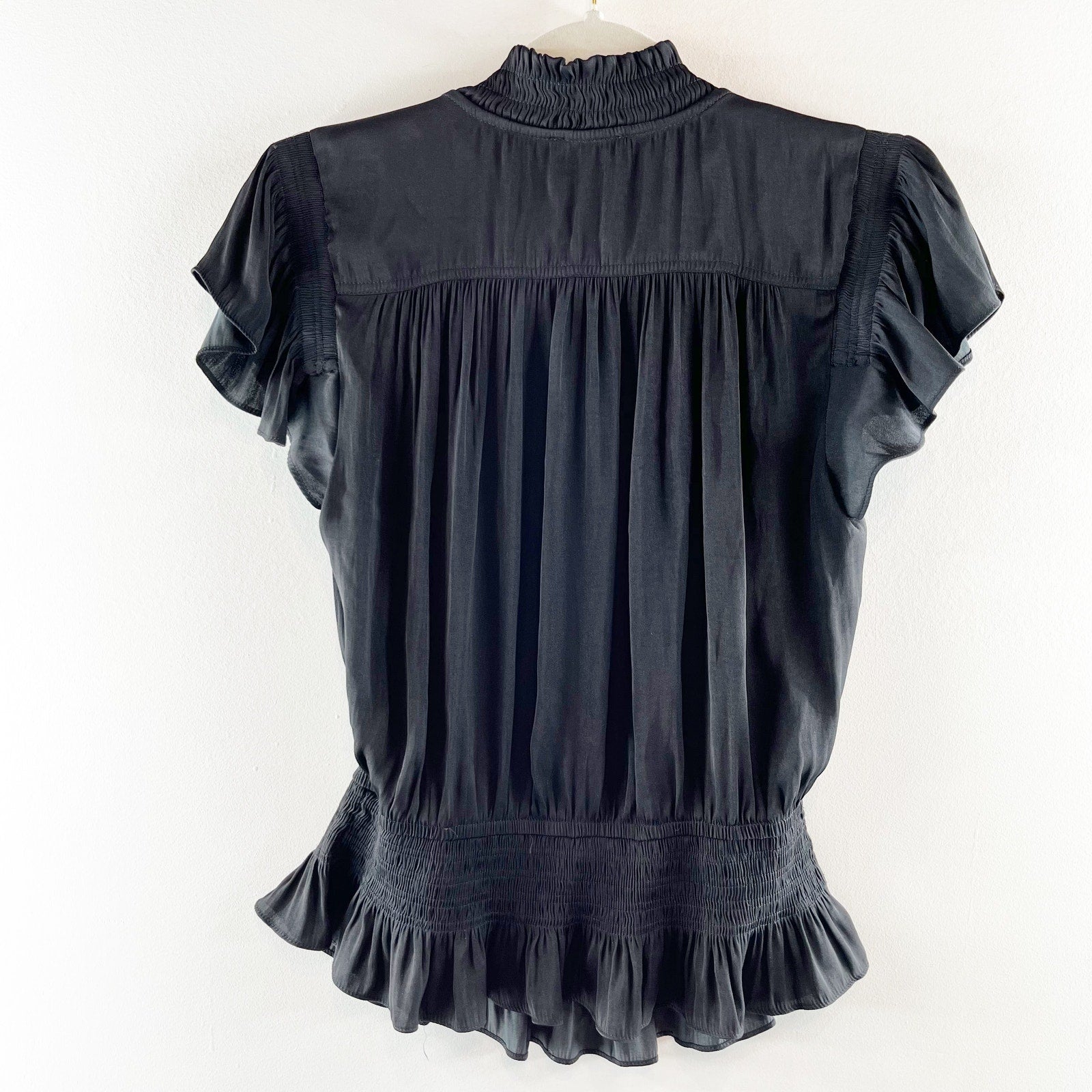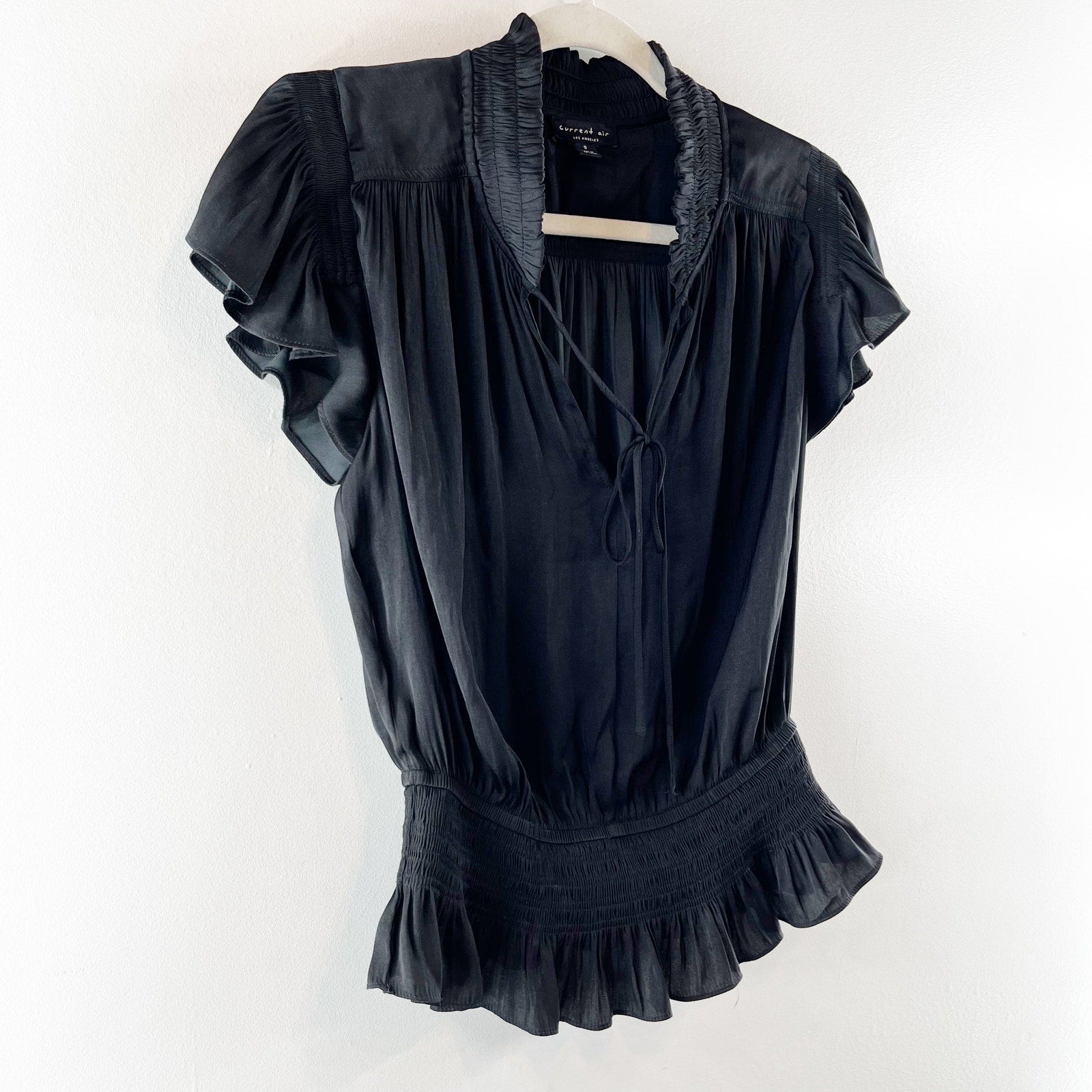 Current Air Los Angeles V-Neck Flutter Sleeve Smocking Waist Blouse Black Small