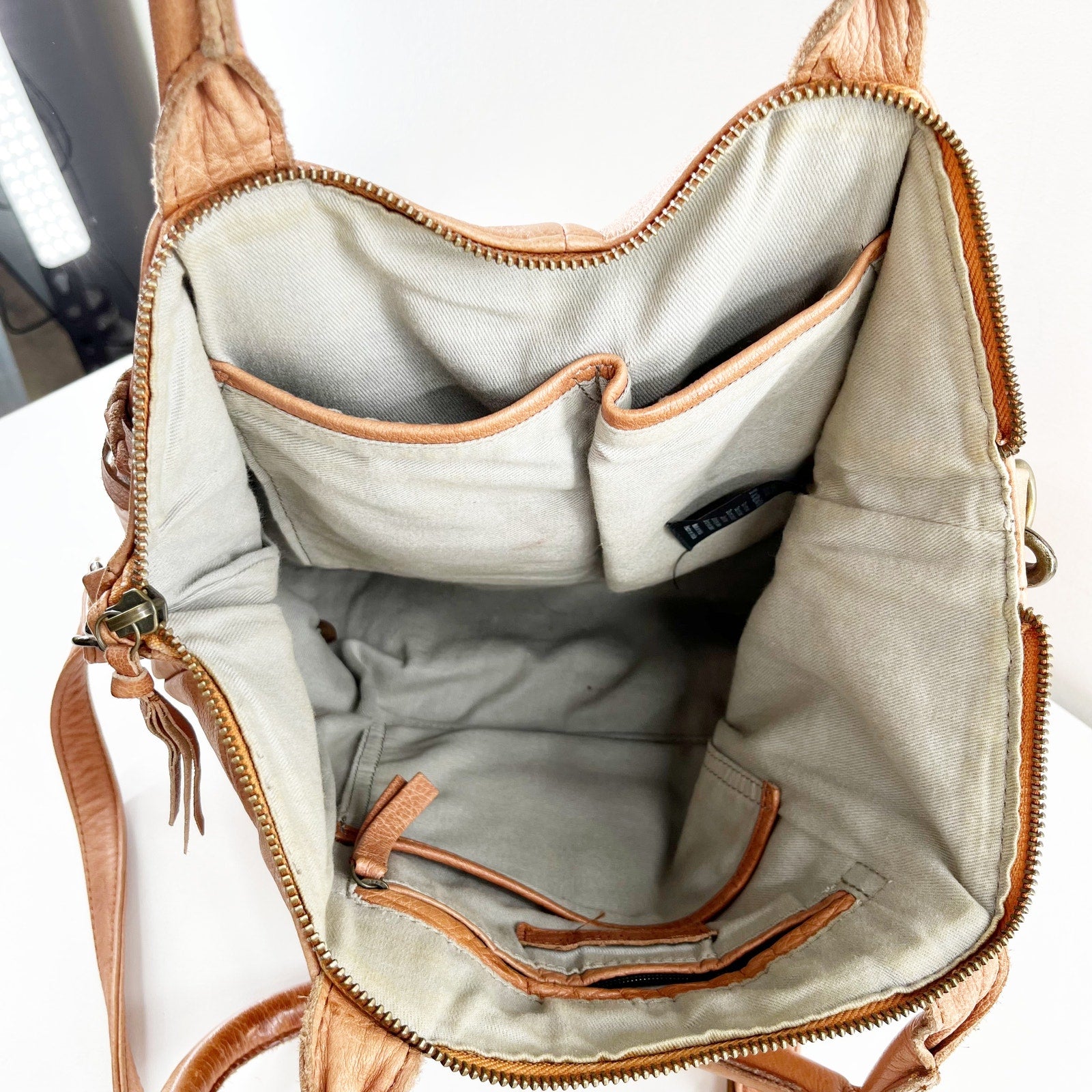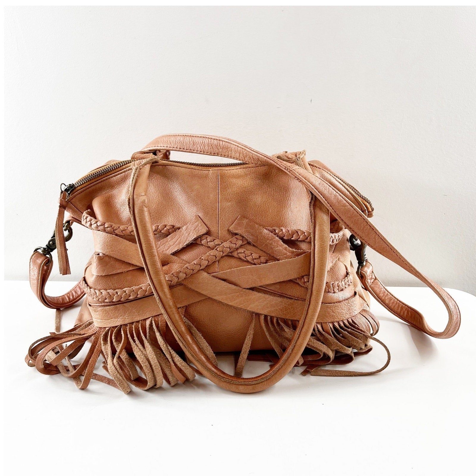 leather, fringe, bag, purse, tote, zip closure, brown, boho, western, lined interior, removable crossbody strap