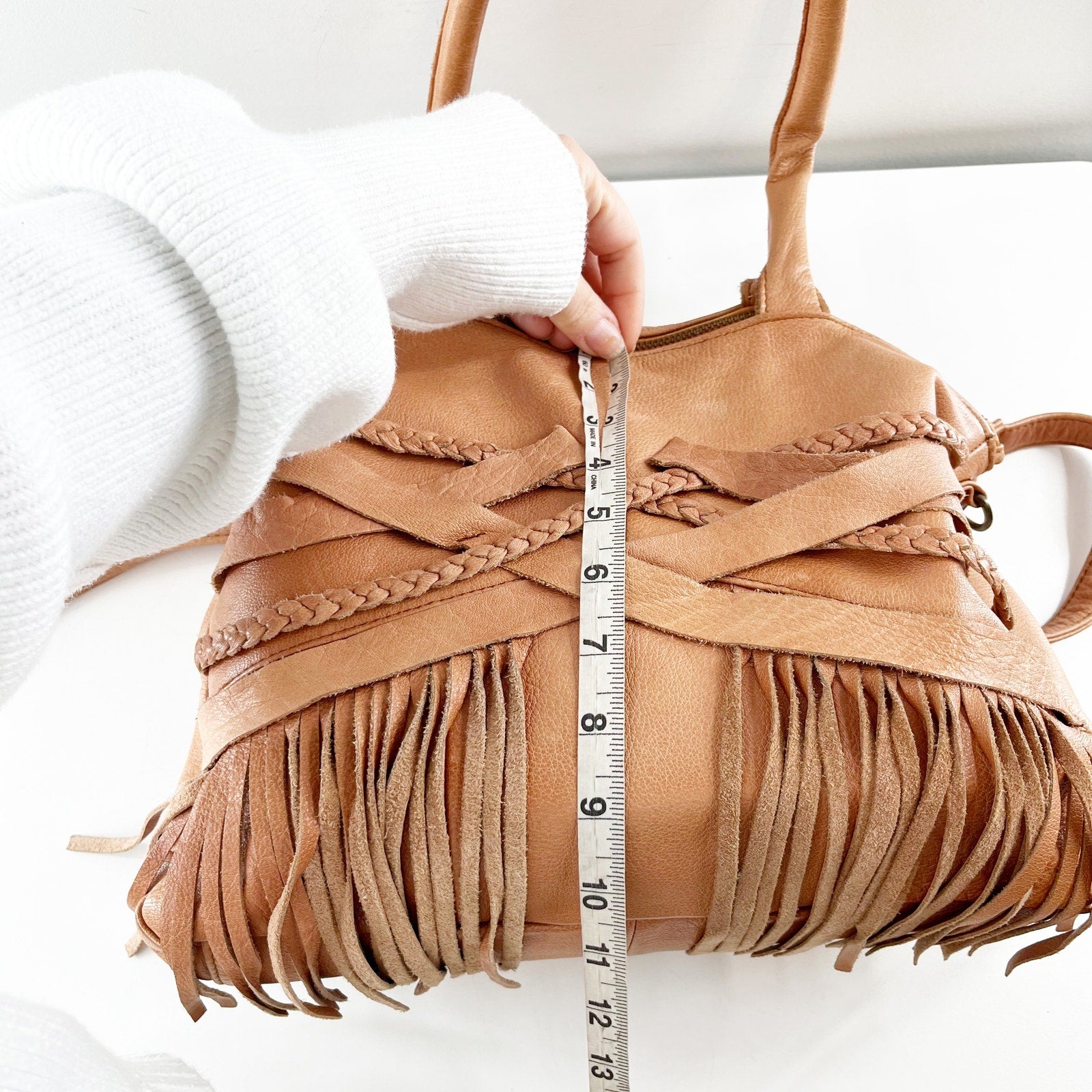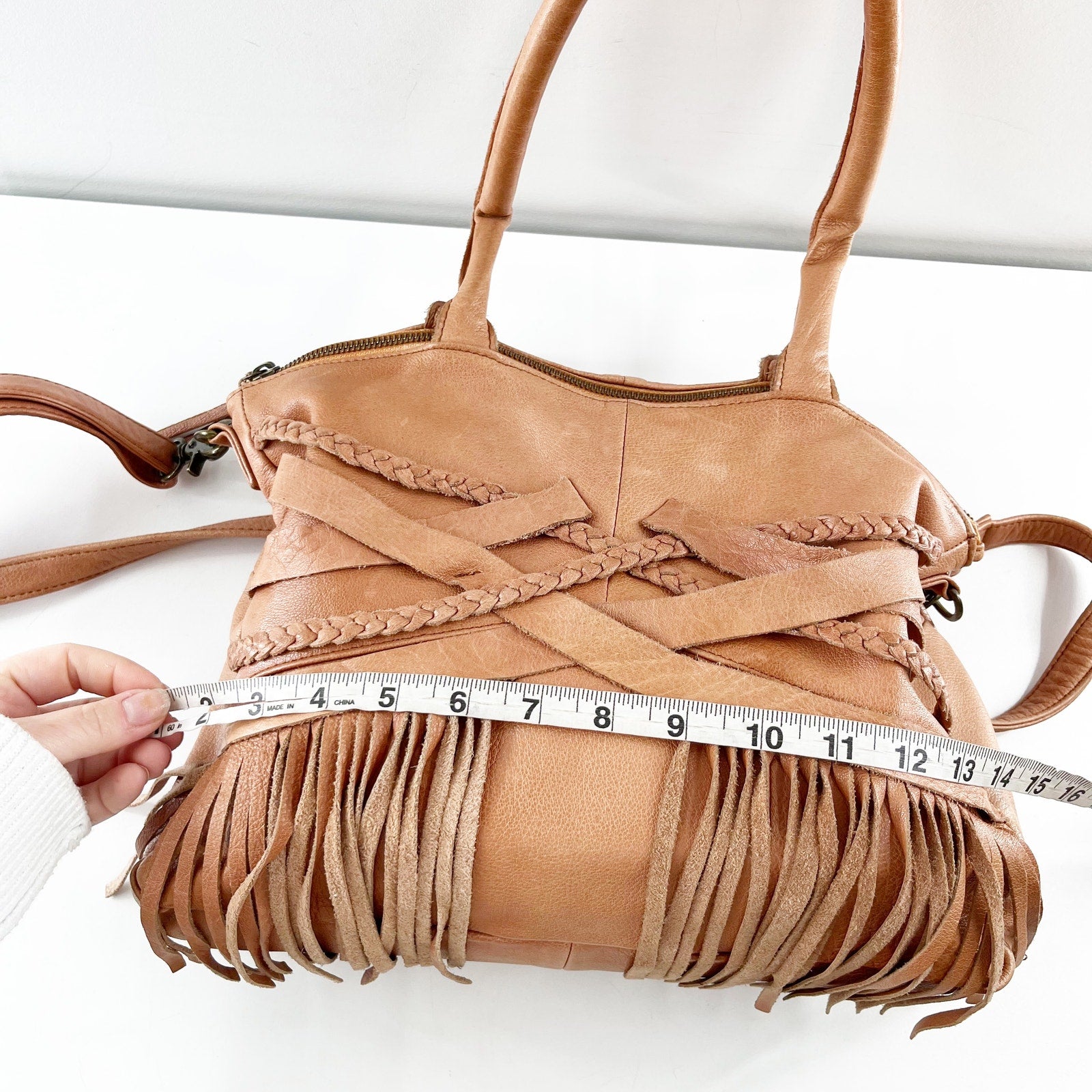Day & Mood Crossbody Leather Fringe Satchel Purse Bag Brown