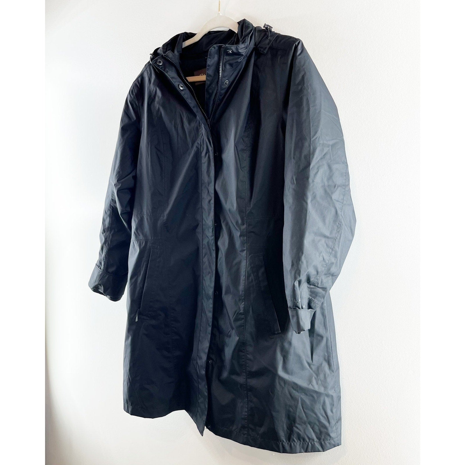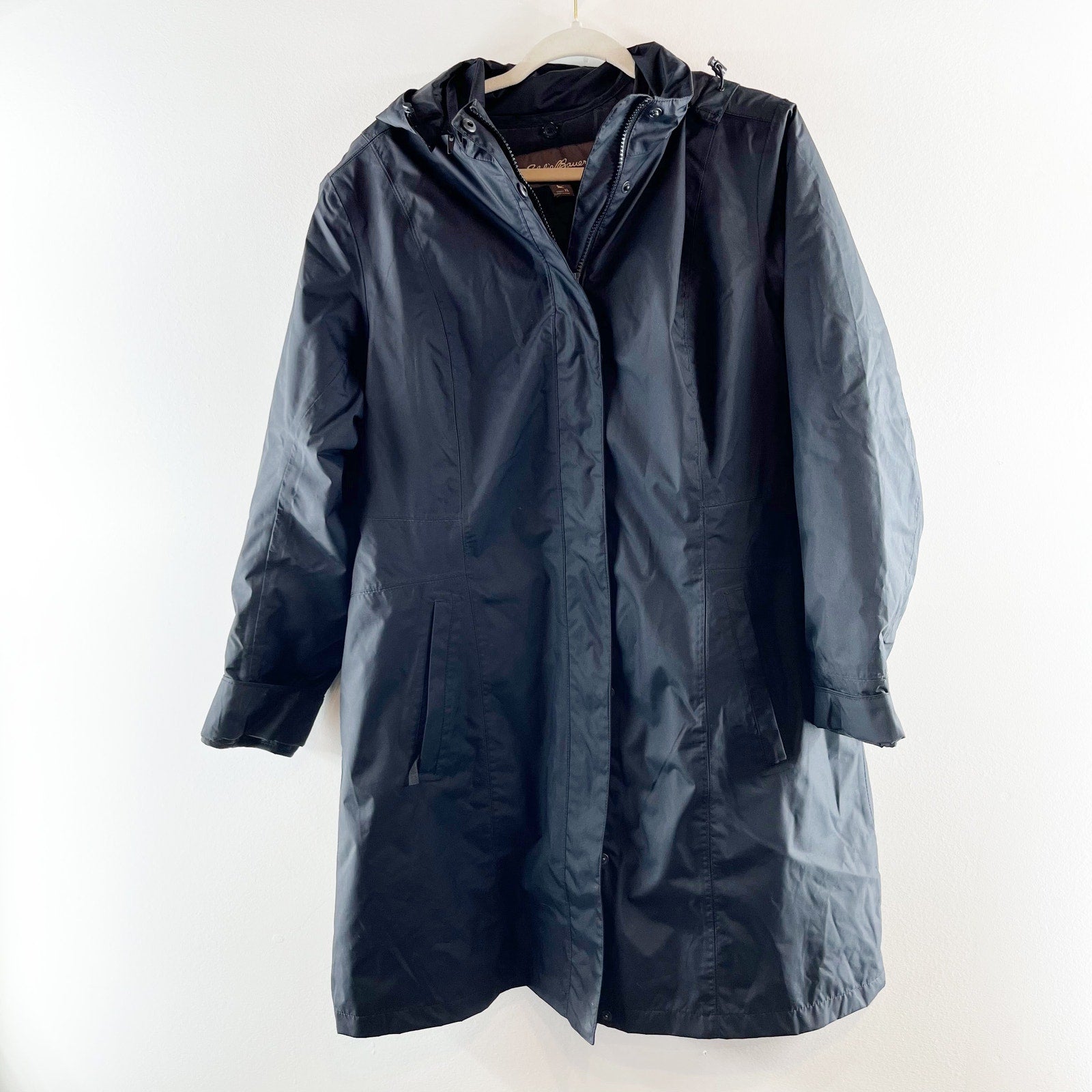 Eddie Bauer Long Sleeve Lined Full Zip Hooded Rain Coat Jacket Parka Black XL