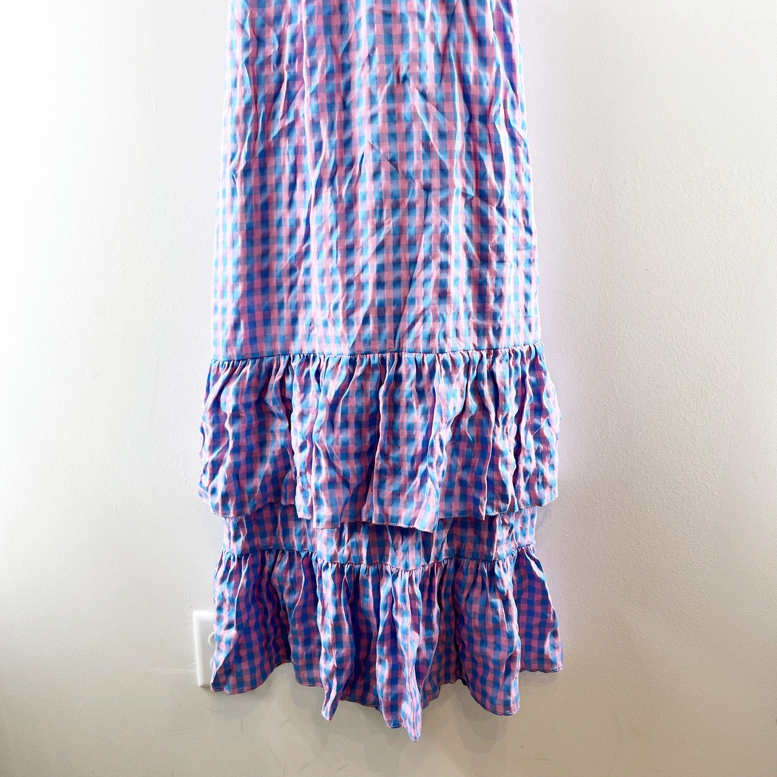 Entro Gingham Print Flutter Sleeve Square Neck Maxi Dress Purple Pink Medium