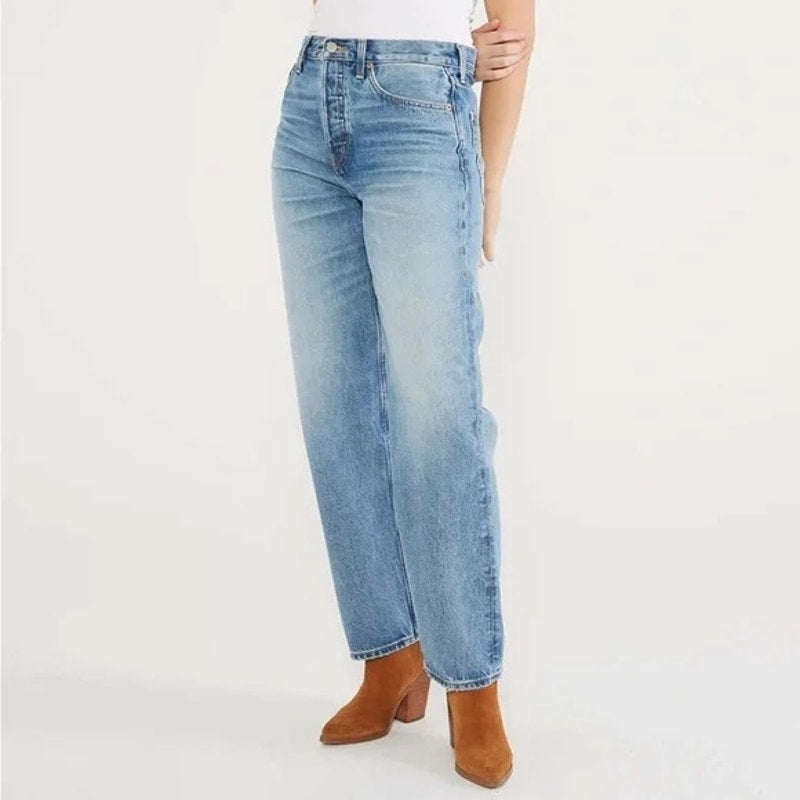 Etica Tyler Vintage High Rise Button Fly Straight Leg Jeans Blue 30