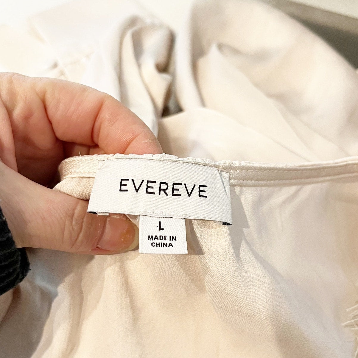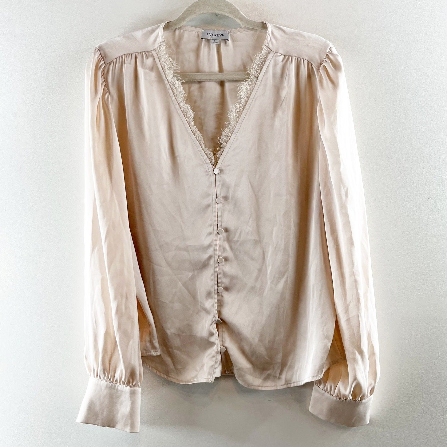 Evereve Ariella Lace Trim Long Sleeve Button Up Satin Blouse Top Champagne Large