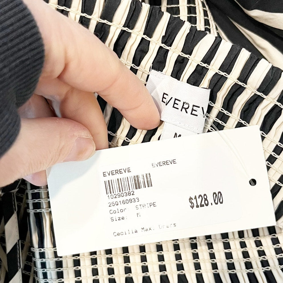 Evereve Cecilia Striped Sleeveless Smocked Maxi Dress Black White Medium