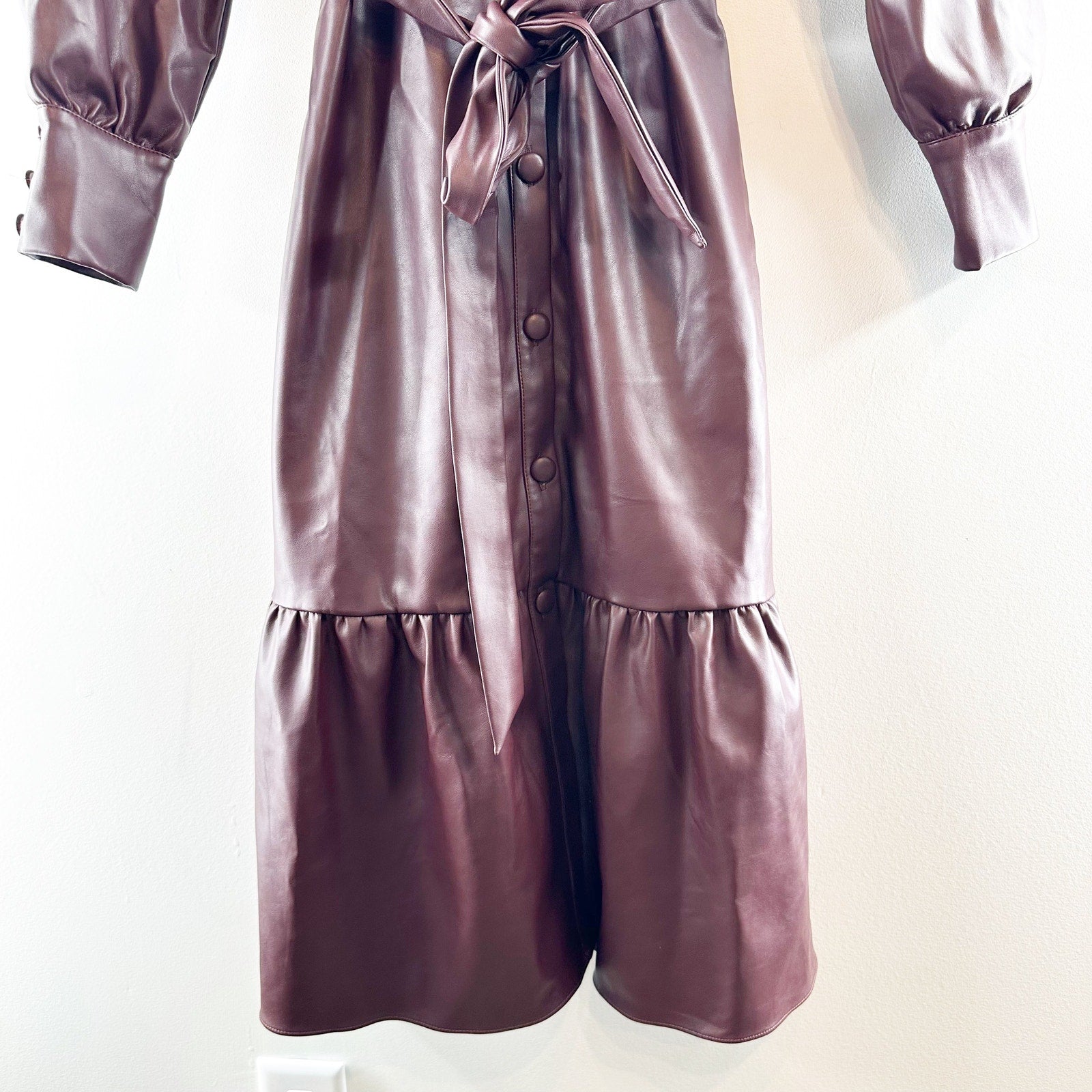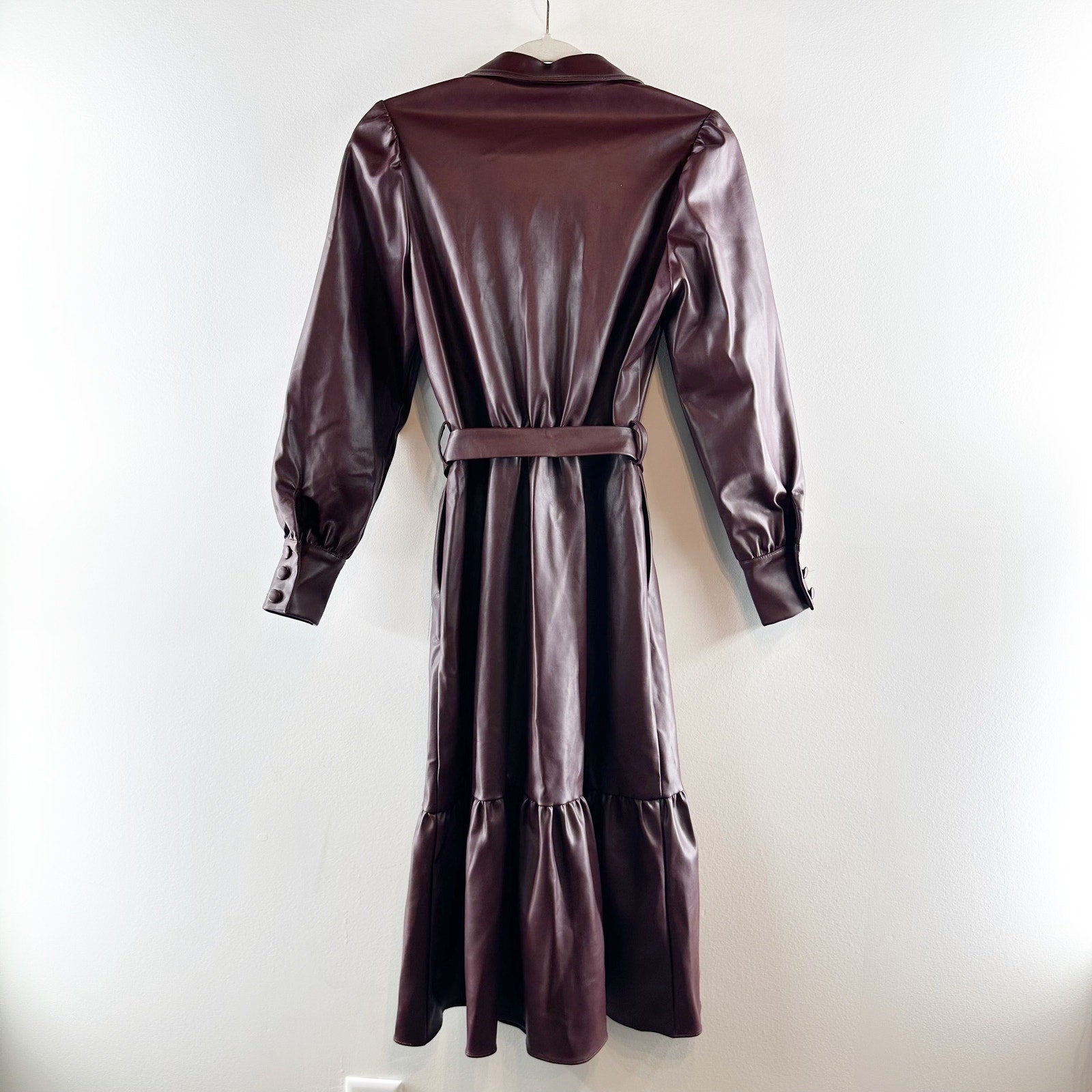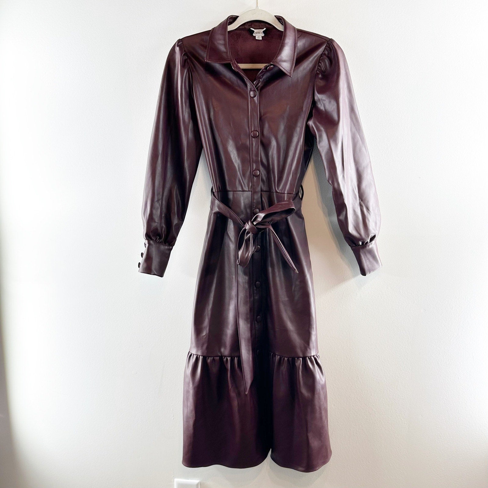Evereve Isabella Long Sleeve Button Up Faux Leather Midi Dress Burgundy Brown XS