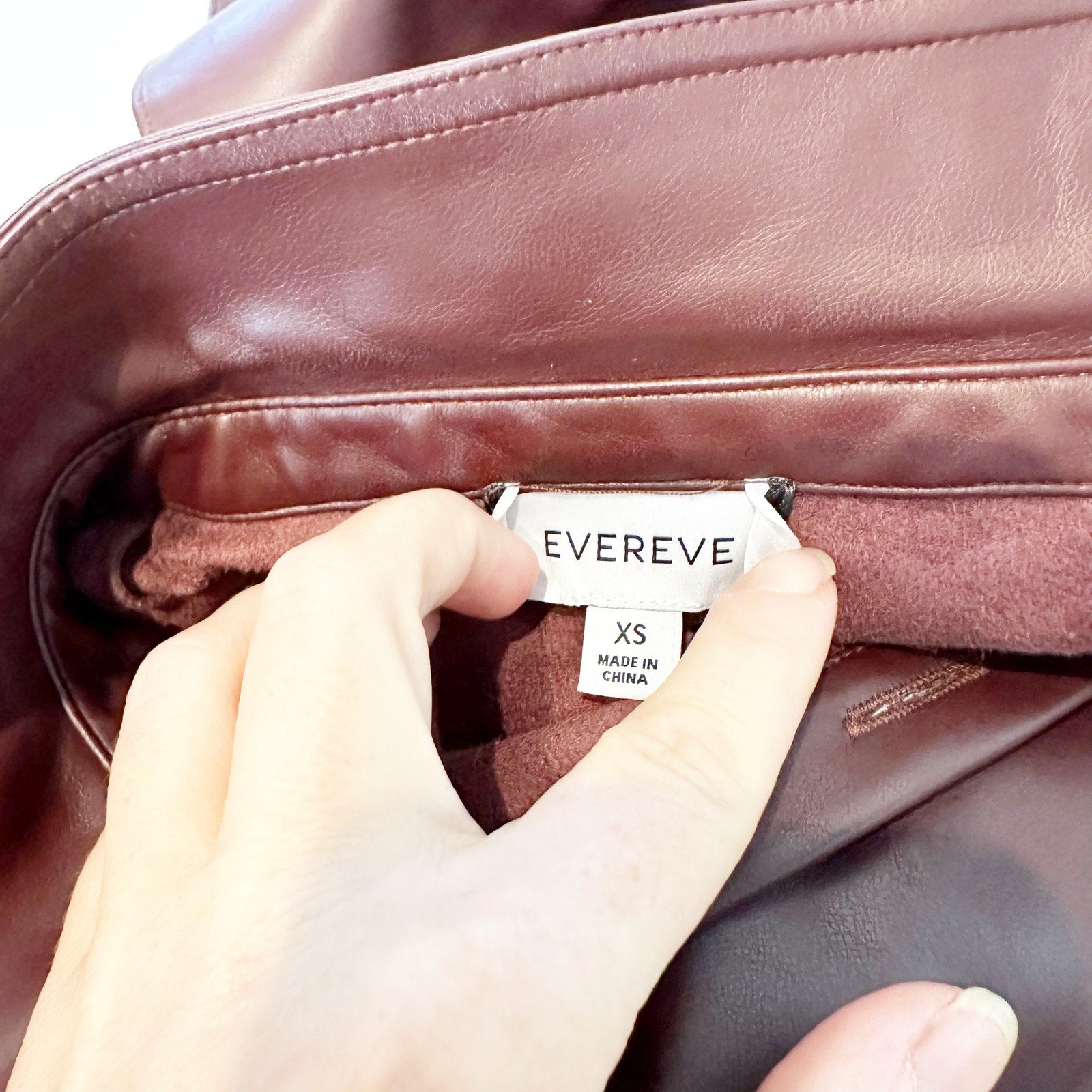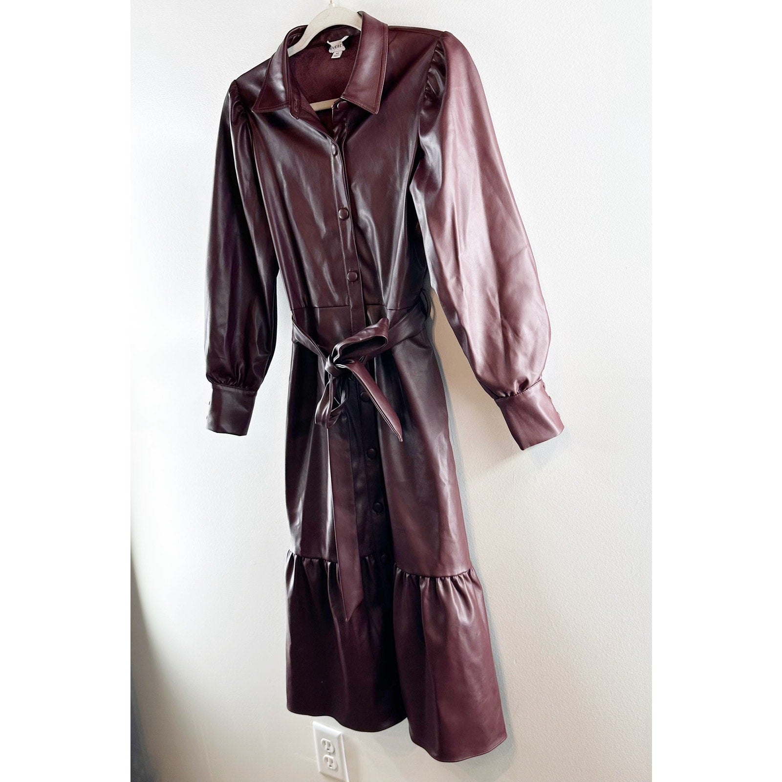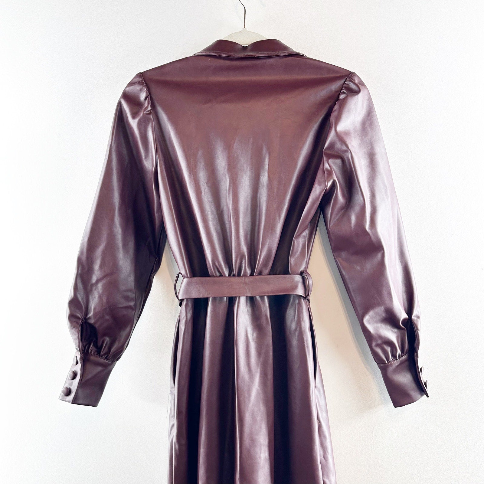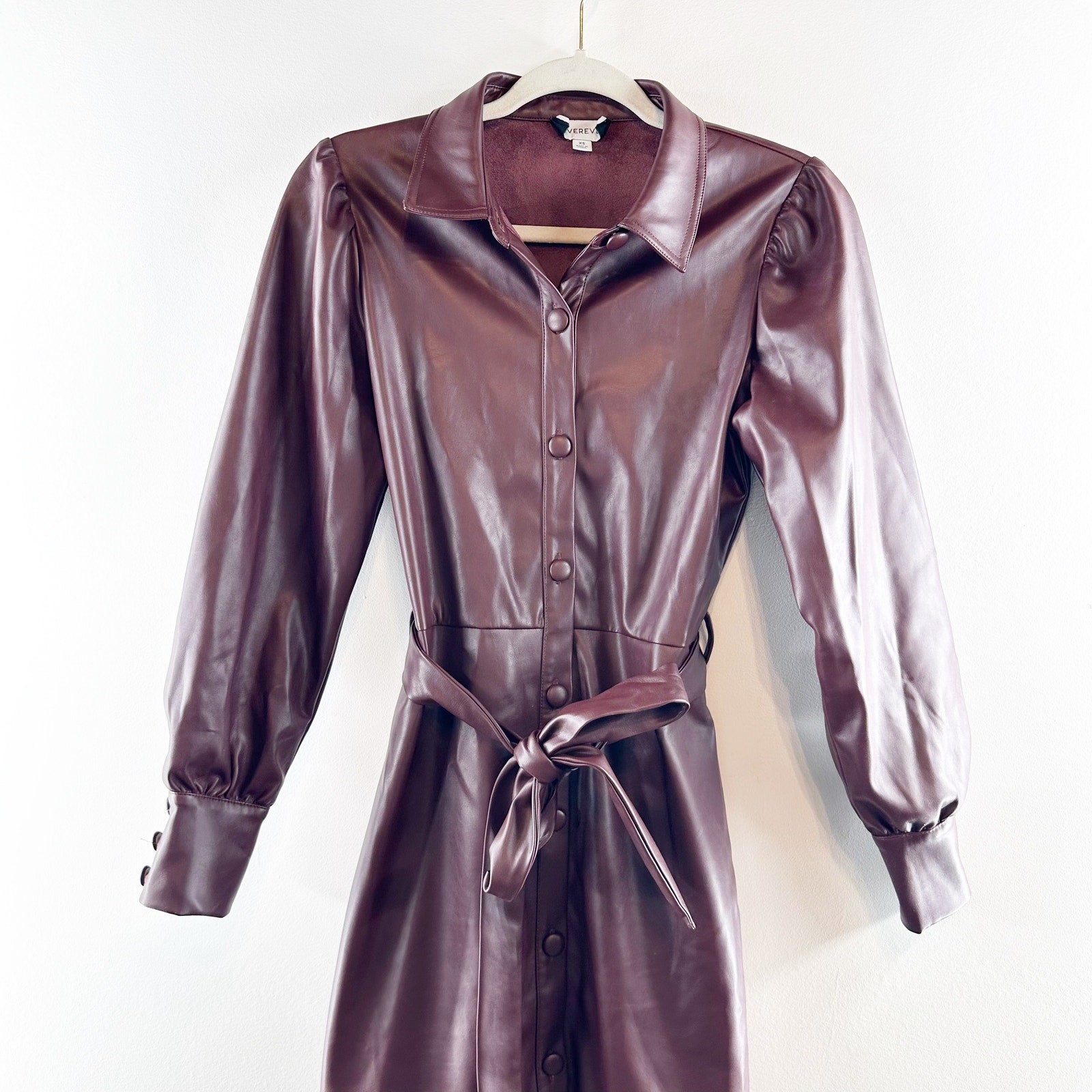 Evereve Isabella Long Sleeve Button Up Faux Leather Midi Dress Burgundy Brown XS