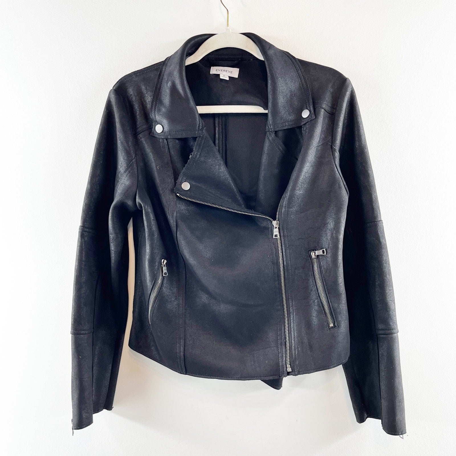 Evereve Marren Long Sleeve Full Zip Faux Leather Moto Jacket Black Medium