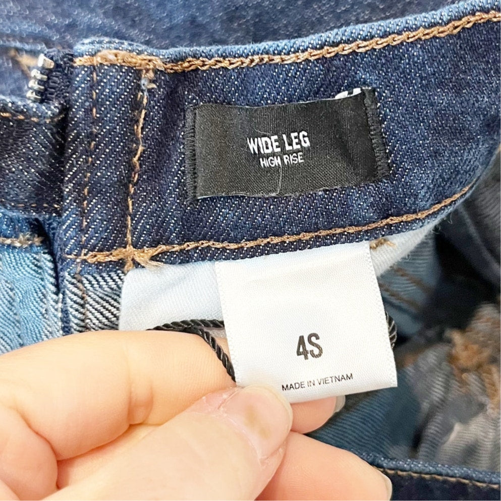 Express High Rise Wide Leg Exposed Double Zipper Dark Wash Jeans 4 Petite