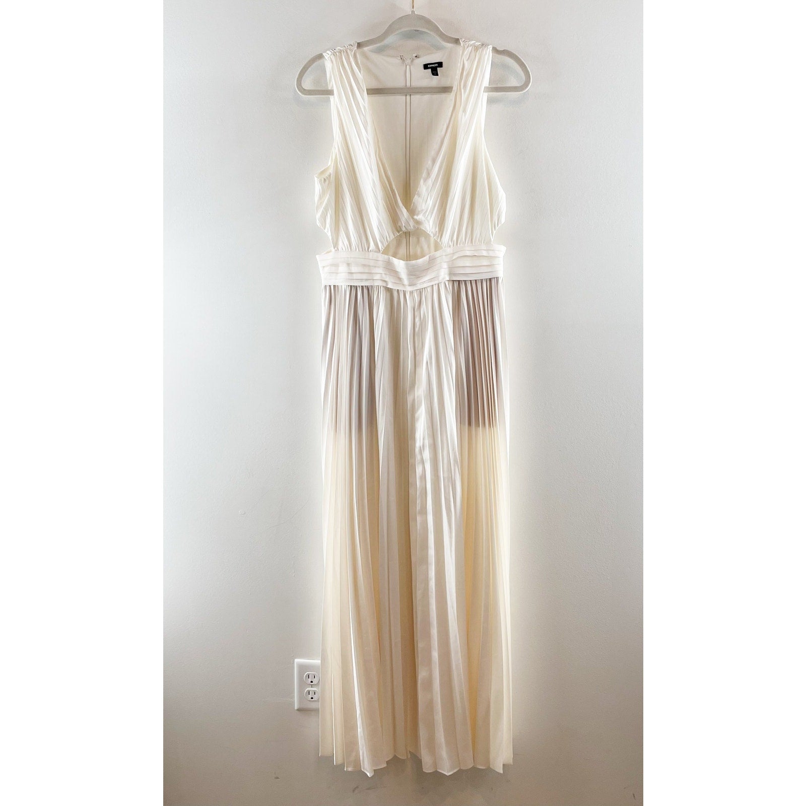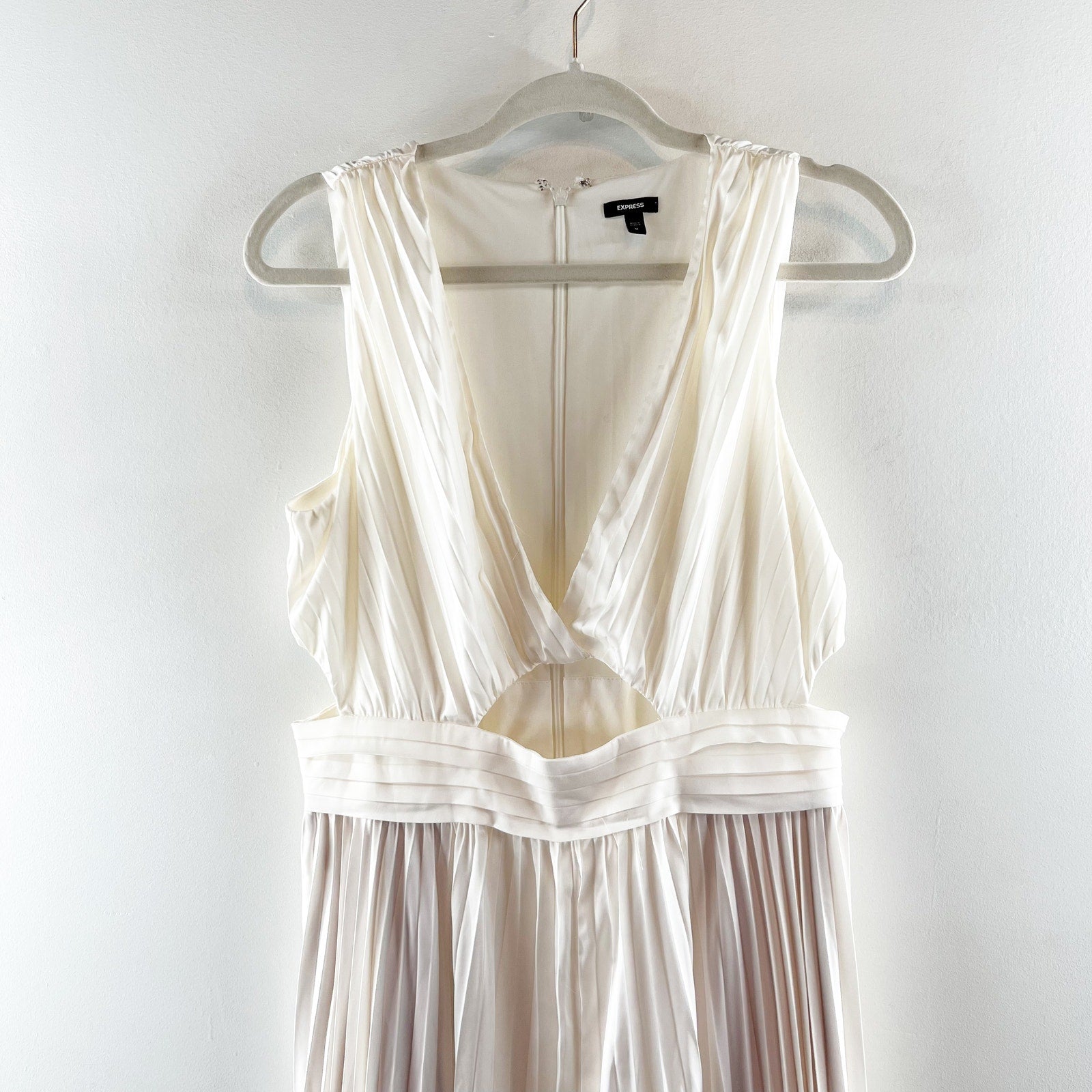 Express Pleated Cutout Sleeveless Maxi Dress Gown Ivory White Medium