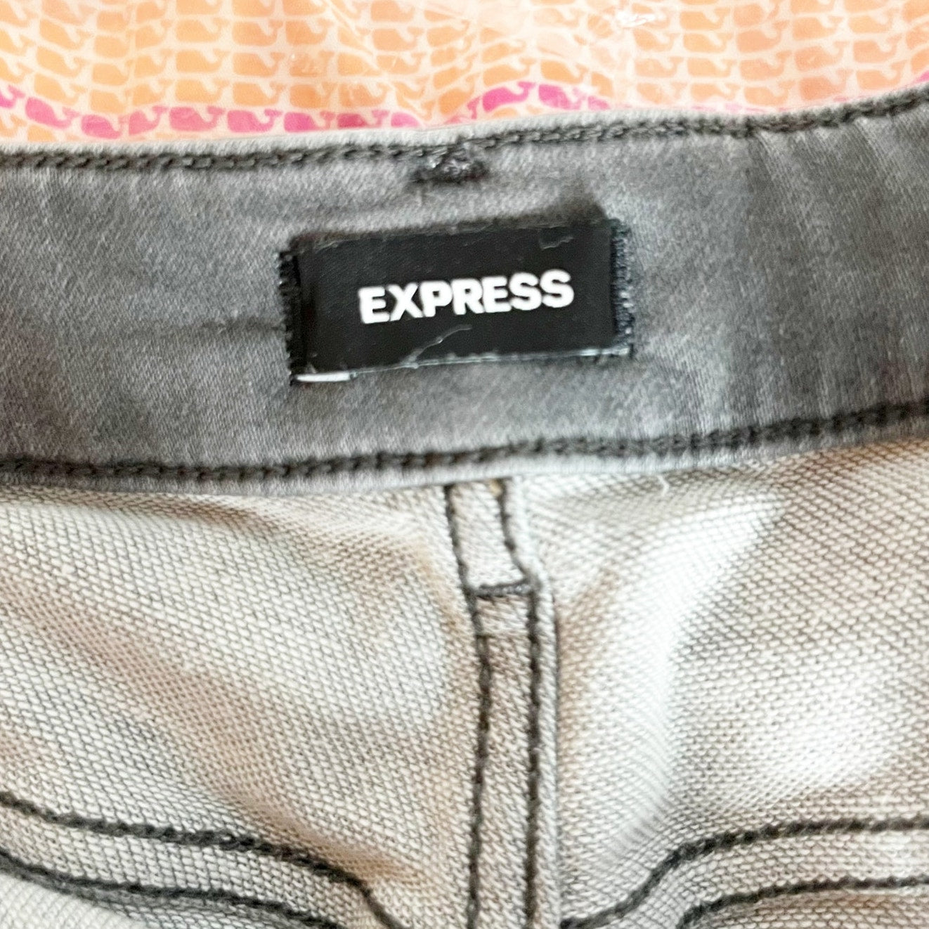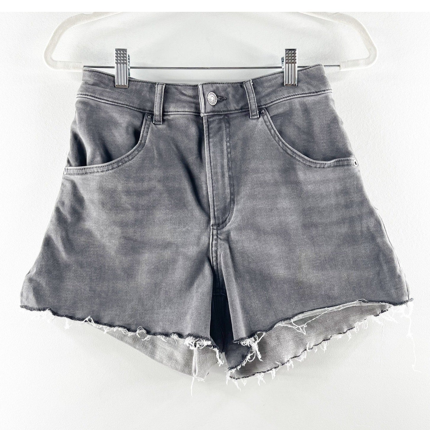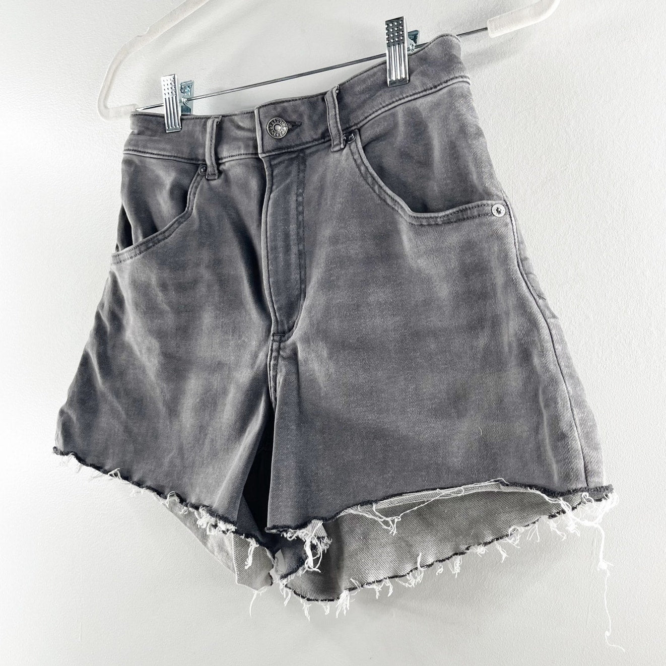 Express Super High Waisted Denim Raw Hem Curvy Jean Mom Shorts Faded Black 6