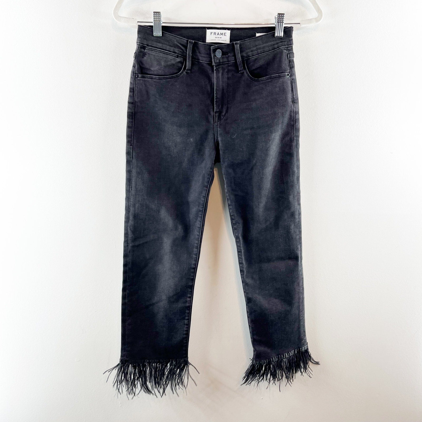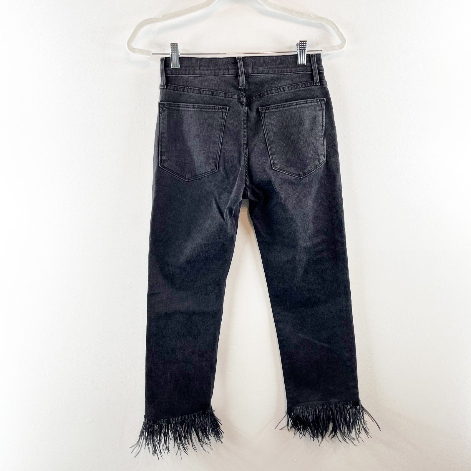 Frame Denim Le High Straight Feather Hem Cropped Jeans Ludlow Black 26 / 2