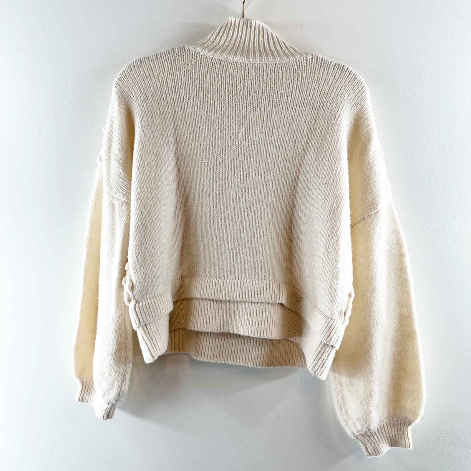 Frame Nubby Long Sleeve Popcorn Knit Tiered Pullover Sweater Cream Small