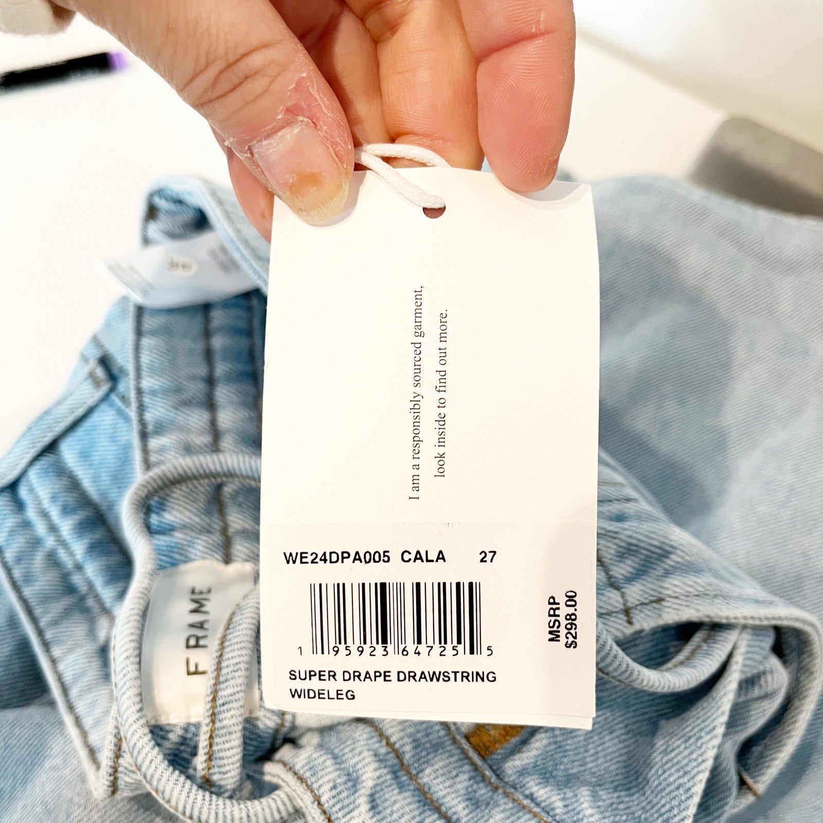 FRAME Super Drape Drawstring High Waisted Denim Wide Leg Jeans Blue 27