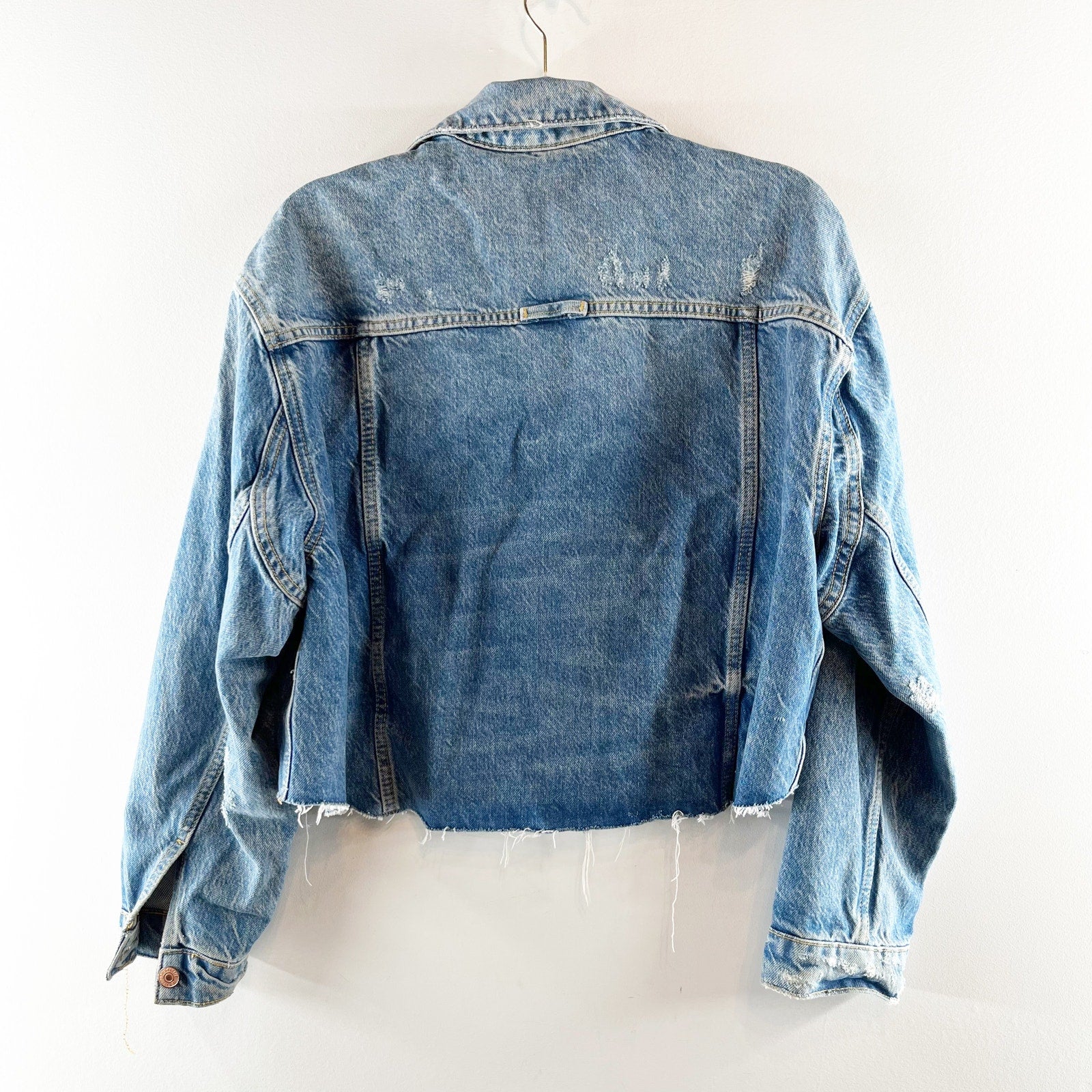 Free People Amelia Slouchy Raw Hem Trucker Jean Denim Jacket Blue Small