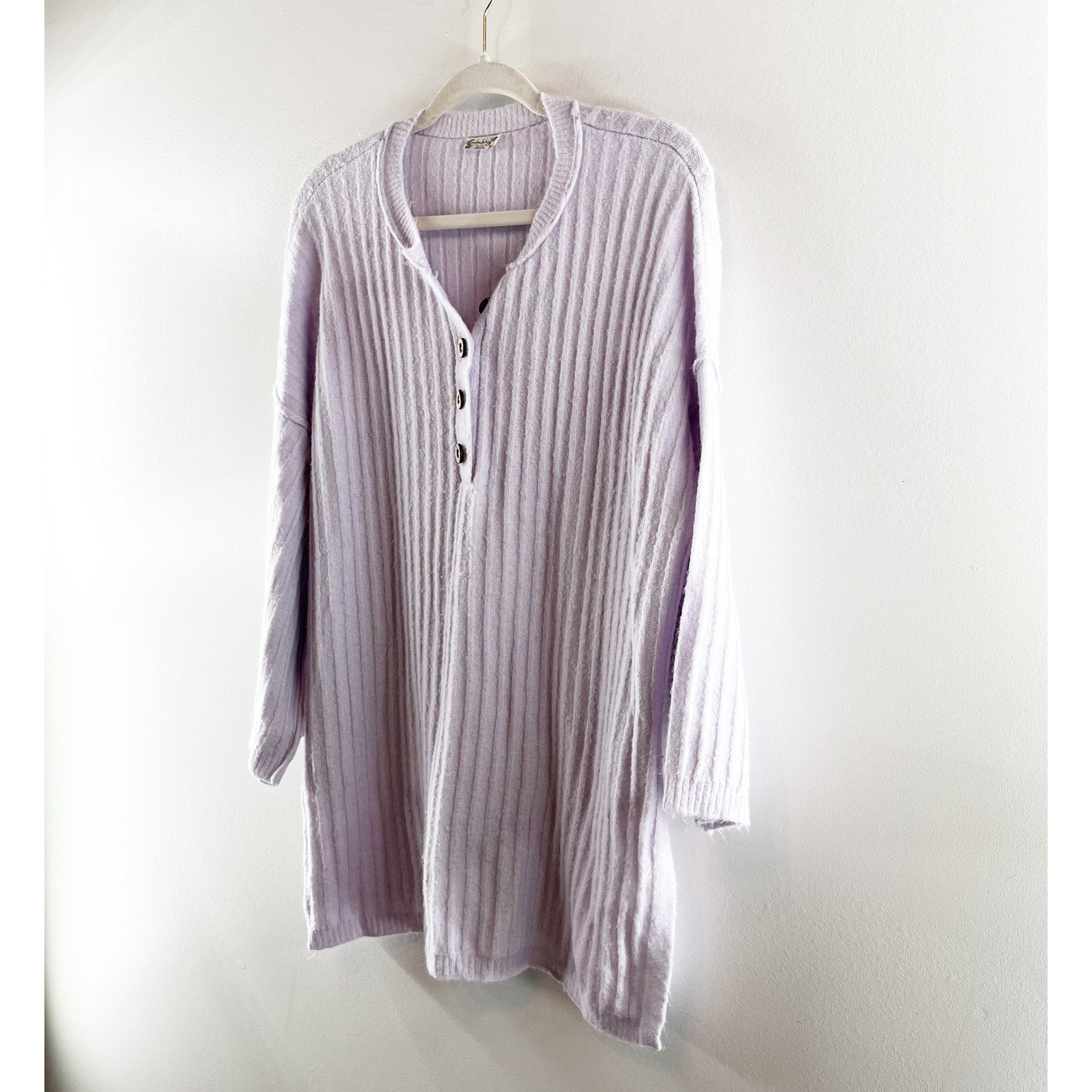 Free People Around the Clock Ribbed Long Sleeve Tunic Sweater Lilac Purple XS