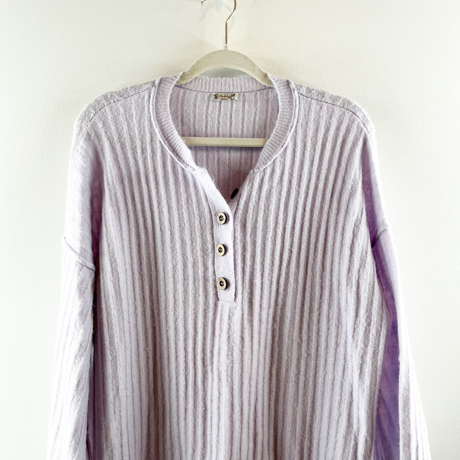 tunic, wooden buttons, ribbed, soft, lounge, long sleeve, sweater, lavender purple, oversized
