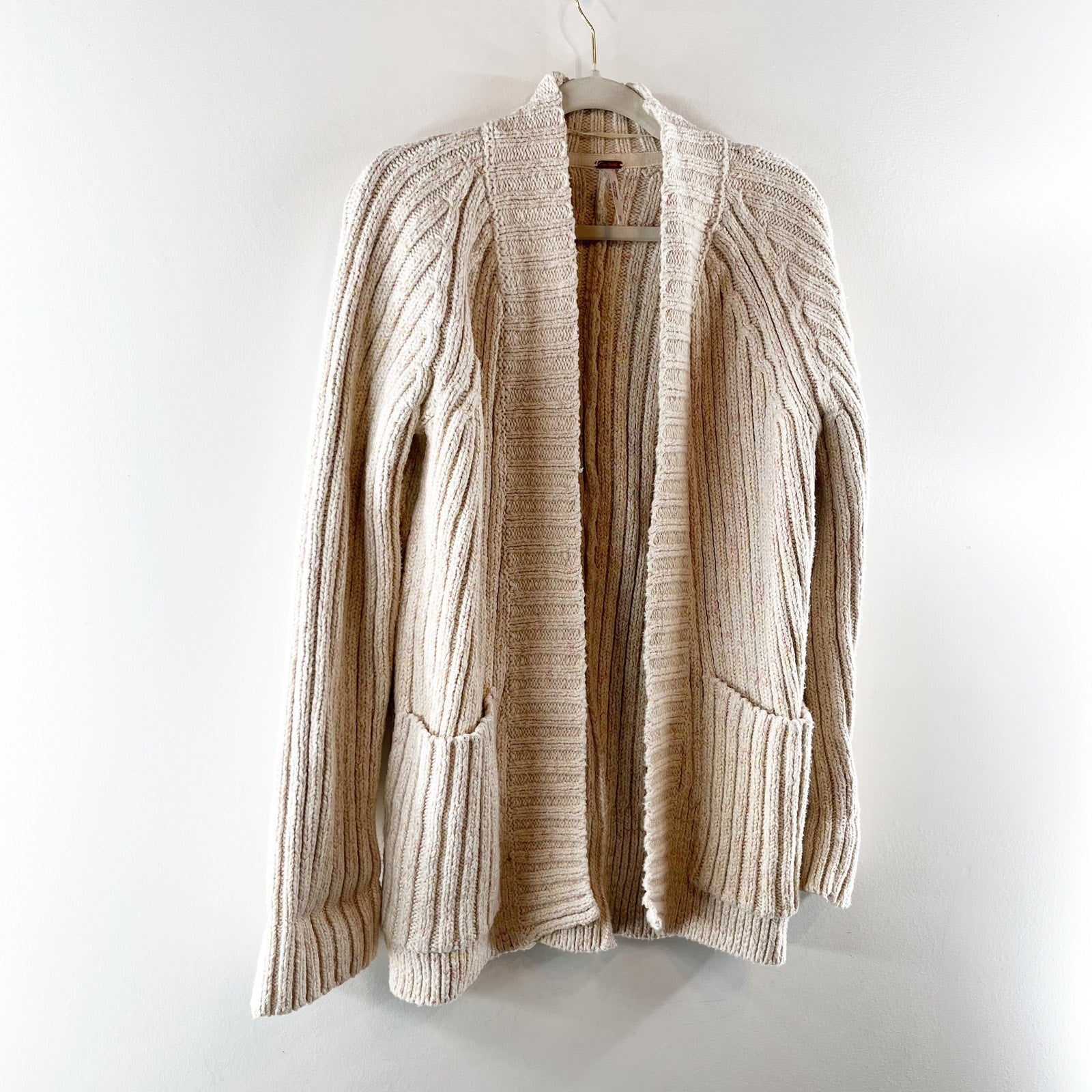 Free People Blossom Cotton Open Chunky Cardigan Sweater Cream Tan XS