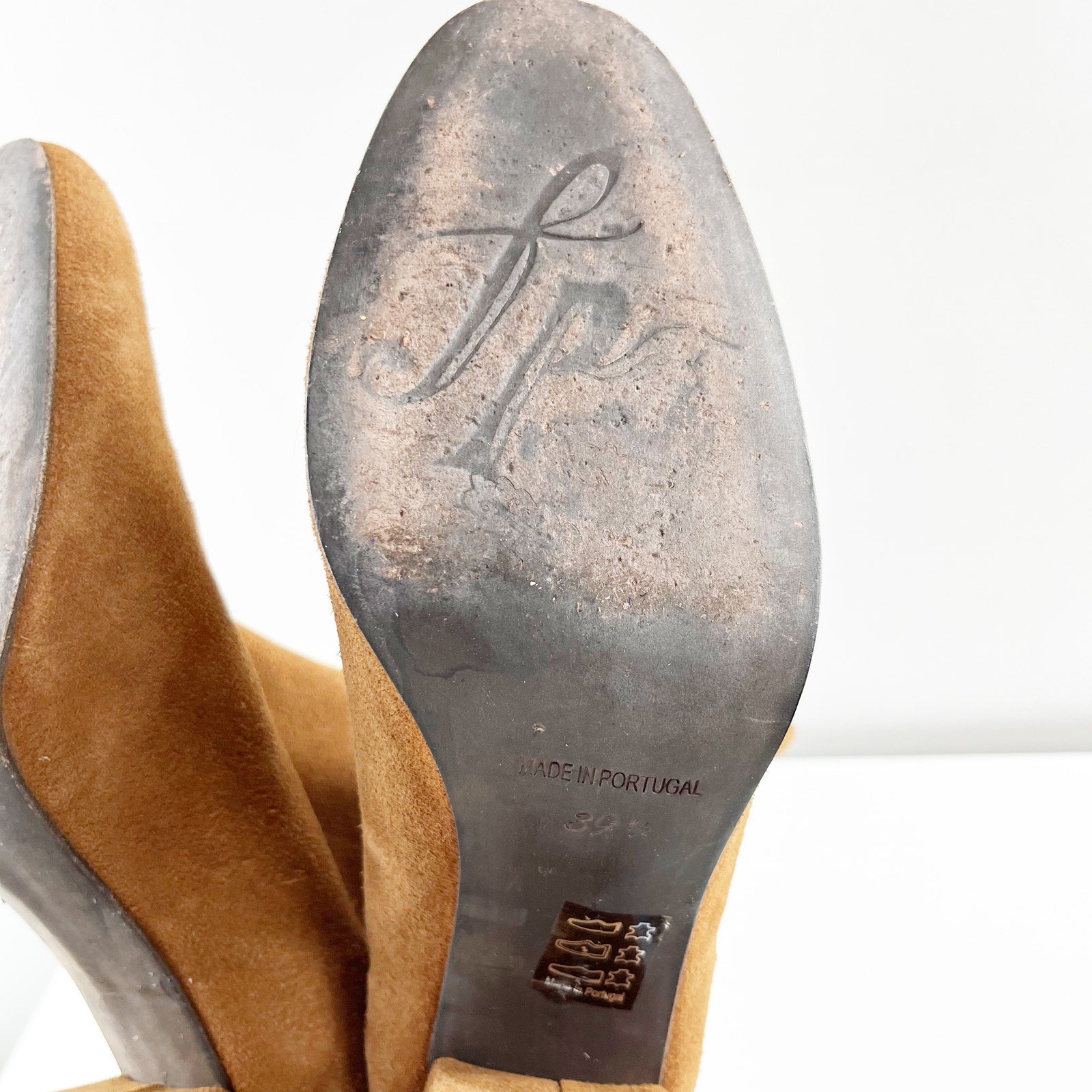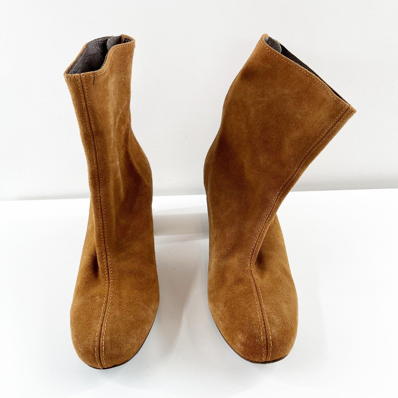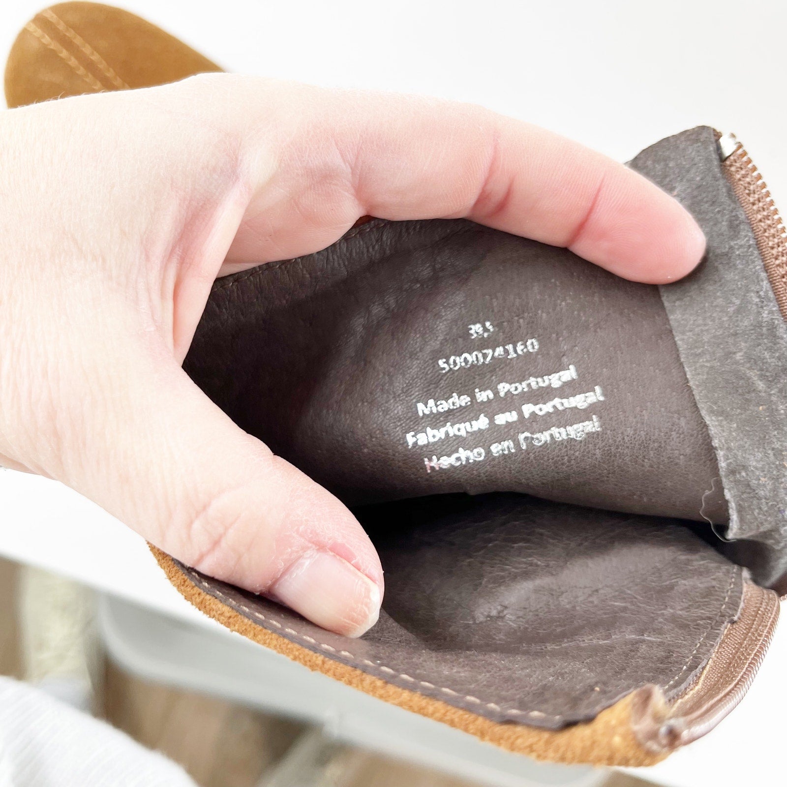 Free People Cecile Square Toe Block Heel Back Zip Suede Ankle Boots Brown 9.5
