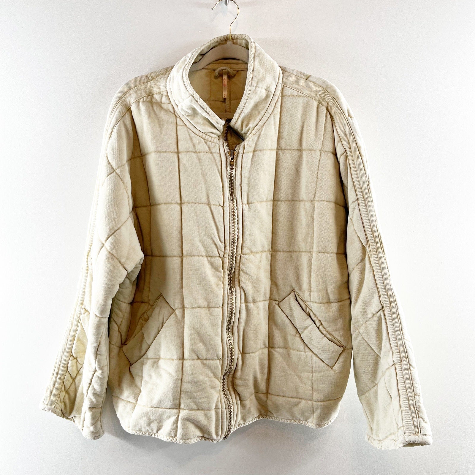 Free People Dolman Quilted Oversized Zip-Up Slouchy Knit Jacket Vanilla Creme M