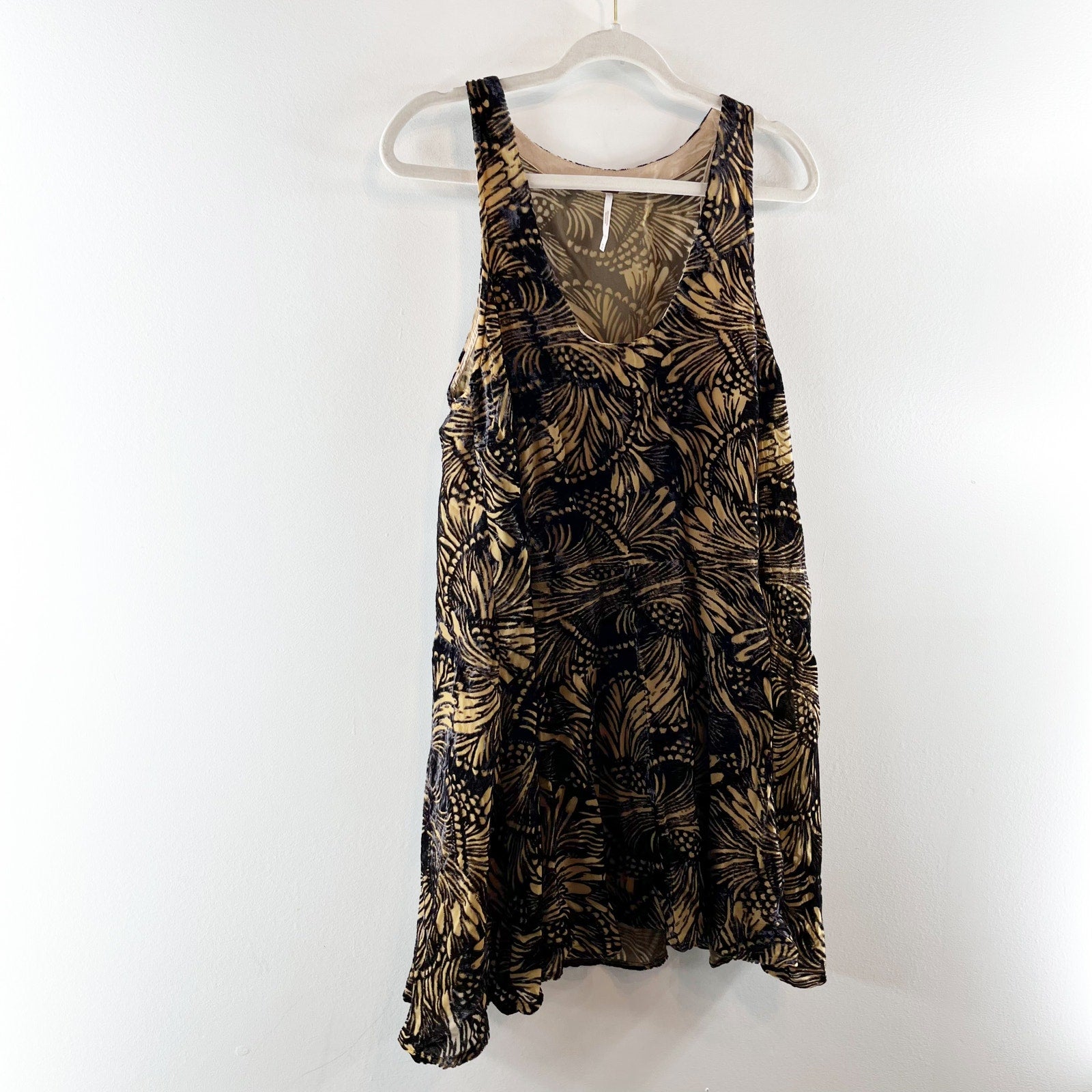 Free People Ellie Velvet Swing Ruffle Hem Mini Dress Black Medium